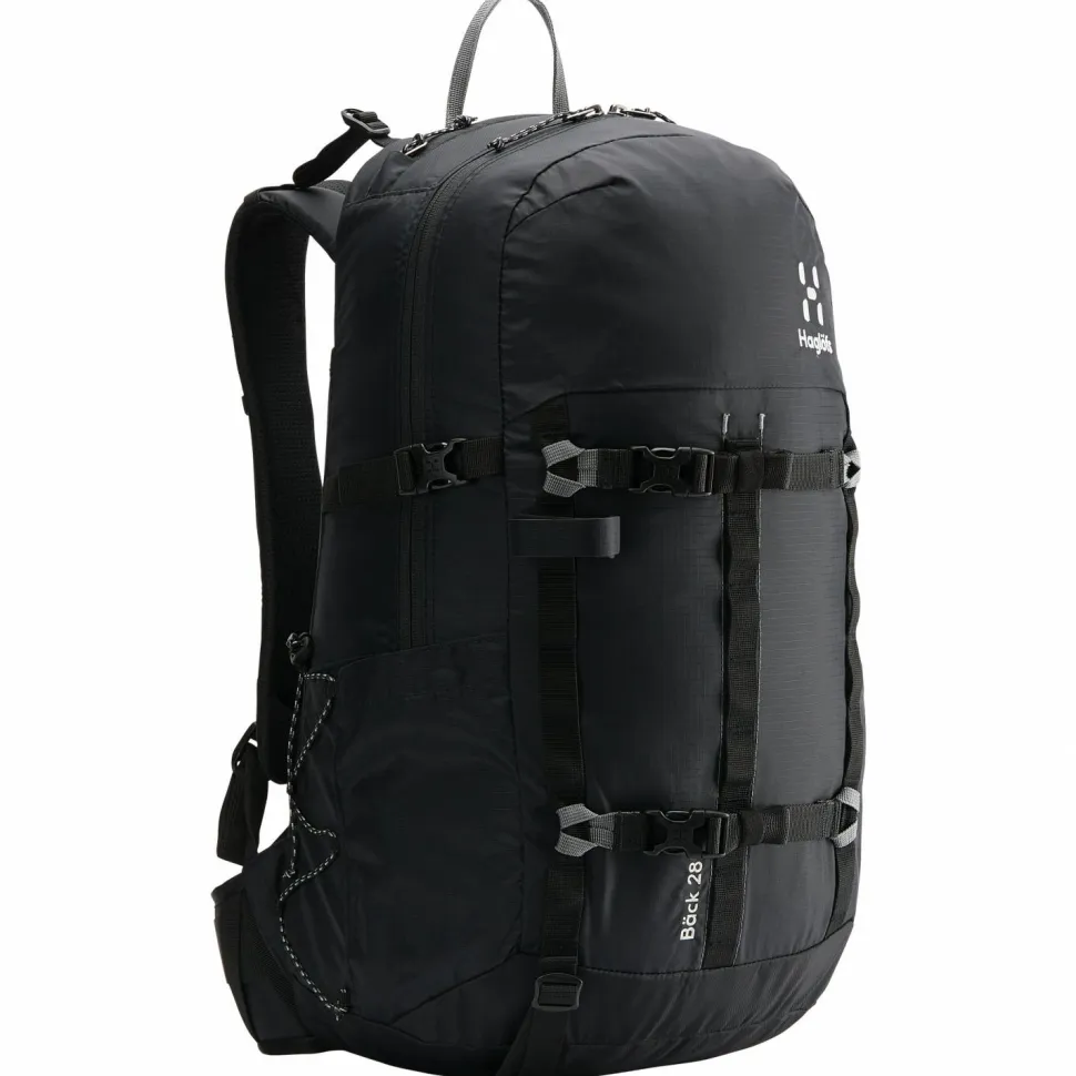 Um einen bestmöglichen Tragekomfort zu gewährleisten, kann die Rückenlänge zwischen 45 und 54 Zentimetern individuell eingestellt werden. An der Außenseite befinden sich zudem zwei Seitentaschen sowie ein kleines Deckelfach mit praktischem Schlüsselclip. Alles dabei – mit dem Bäck 28 von Haglöfs!