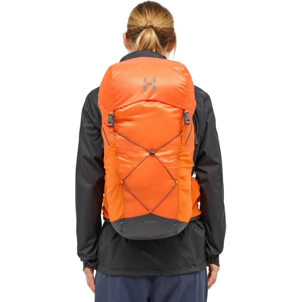 Der L.I.M 25 Wanderrucksack von Haglöfs ist ein auffallend leichtes und luftiges Multitalent. Sein Fliegengewicht von unter einem Kilo sollte jedoch nicht darüber hinwegtäuschen, dass er in Sachen Tragekomfort keinerlei Abstriche macht. Sein Airback-Tragesystem mit dem speziell designten Rückeneinsatz bietet die unverzichtbare Belüftung bei temporeichen Aktivitäten mit hohem Puls. Und auch die anderen wichtigen Funktionen fehlen bei diesem ultra-leichten und ultra-funktionalen Tourenbegleiter keineswegs. So ist der Hüftgurt auch für umfangreicheres Gepäck ausreichend gepolstert und der Korpus mit genügend Zusatztaschen ausgestattet.