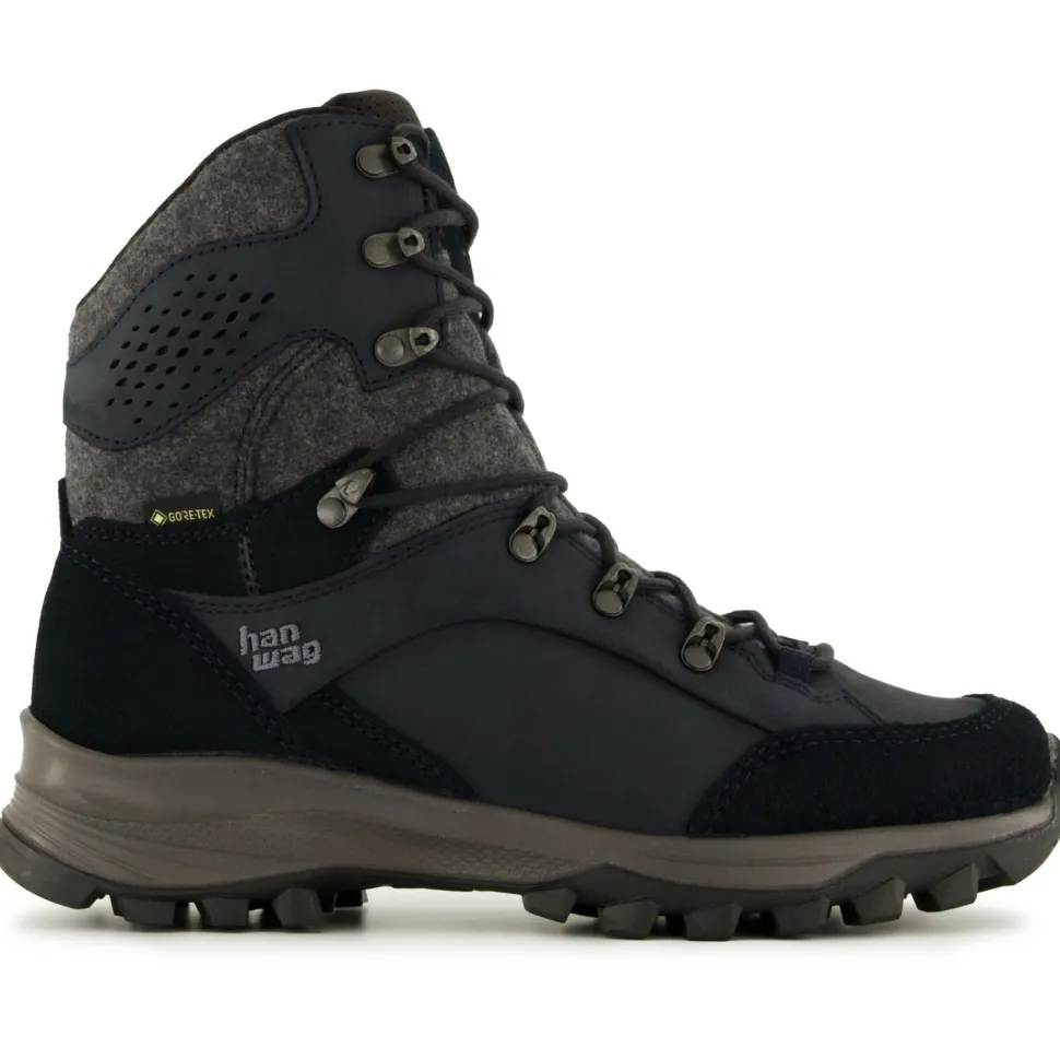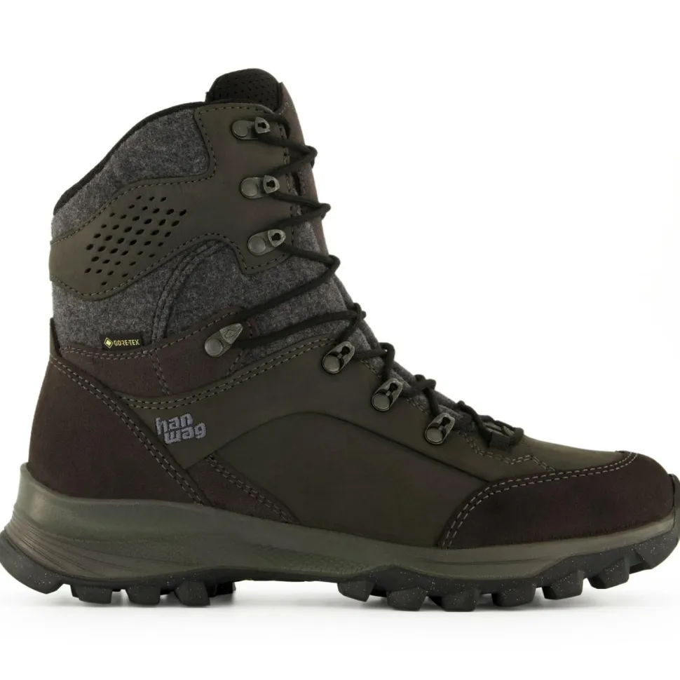 Sieht super aus und eignet sich idealerweise zum Winterwandern und für die Freizeit: der Banks Winter Lady GTX von Hanwag! Der Schuh kommt mit einem bewusst etwas höher geschnittenen Schaft, sodass er mehr Komfort bei Schnee und Kälte verspricht. Der Vorteil durch den hohen Schaft: Das kalte Nass gelangt von oben schwieriger ins Schuhinnere. Zusätzlich ist das GORE-TEX Partelana Futter nicht nur wärmend, sondern auch wasserdicht sowie atmungsaktiv. So genießt man stets einen trockenen Tragekomfort – ganz egal, ob man gerade durch den Schnee läuft, ob es regnet oder matschig ist.