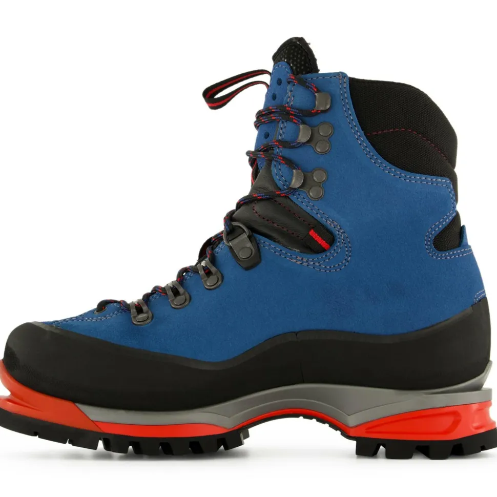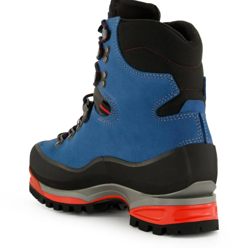 Auf in die Berge mit dem Hanwag Sirius II Lady GTX!Dieser robuste Alpinstiefel besteht aus einem langlebigen Narbenspaltleder mit drei Millimetern Stärke. Ist es eingelaufen, bietet es unvergleichbaren Tragekomfort und hält bei regelmäßiger Pflege ungemein lang. Zudem ist es weitgehend nahtlos gearbeitet, was Komfort, Widerstandsfähigkeit, Gewicht und Pflegeeigenschaften optimiert. Die steife Alpinsohle mit grobem Profil, die über ein umlaufendes Geröllschutzband angeschlossen ist, kann zu Nachhaltigkeitszwecken ebenfalls erneuert werden. Bei der Wiederbesohlung wirde auch der durchgehende PU-Dämpfungskeil erneuert und der Schuh ist weider voll einsatzfähig für das Tragen schweren Gepäcks.Die Sohle bietet besten Halt auf losem Geröll und Eis, ist voll steigeisentauglich (Steigeisen mit Kipphebel-Bindung) und isoliert. Der wasserdichte Oberschuh hat einen hohen Schaft, der in steilem Gelände sicheren Stand unterstützt und den Knöchel vor Verletzungen und Umknicken bewahrt.Die Zunge ist teilweise angenäht und sehr weich sowie isolierend und verfügt am Abschluss über eine praktischen Lasche, die das An- und Ausziehen erleichtert.Nach DIN-Norm ist der Schuh bis zu Temperaturen von -15°C isoliert, was natürlich vom individuellen Kälteempfinden und Erschöpfungsgrad abhängig ist.Mit dem Hanwag Sirius II Lady GTX erhält man einen langlebigen, zuverlässigen und zudem schlicht-schönen Schuh für den anspruchsvollen Einsatz beim Bergsteigen, auf Hoch- und Gletschertouren sowie beim Eis- und Mixedklettern!