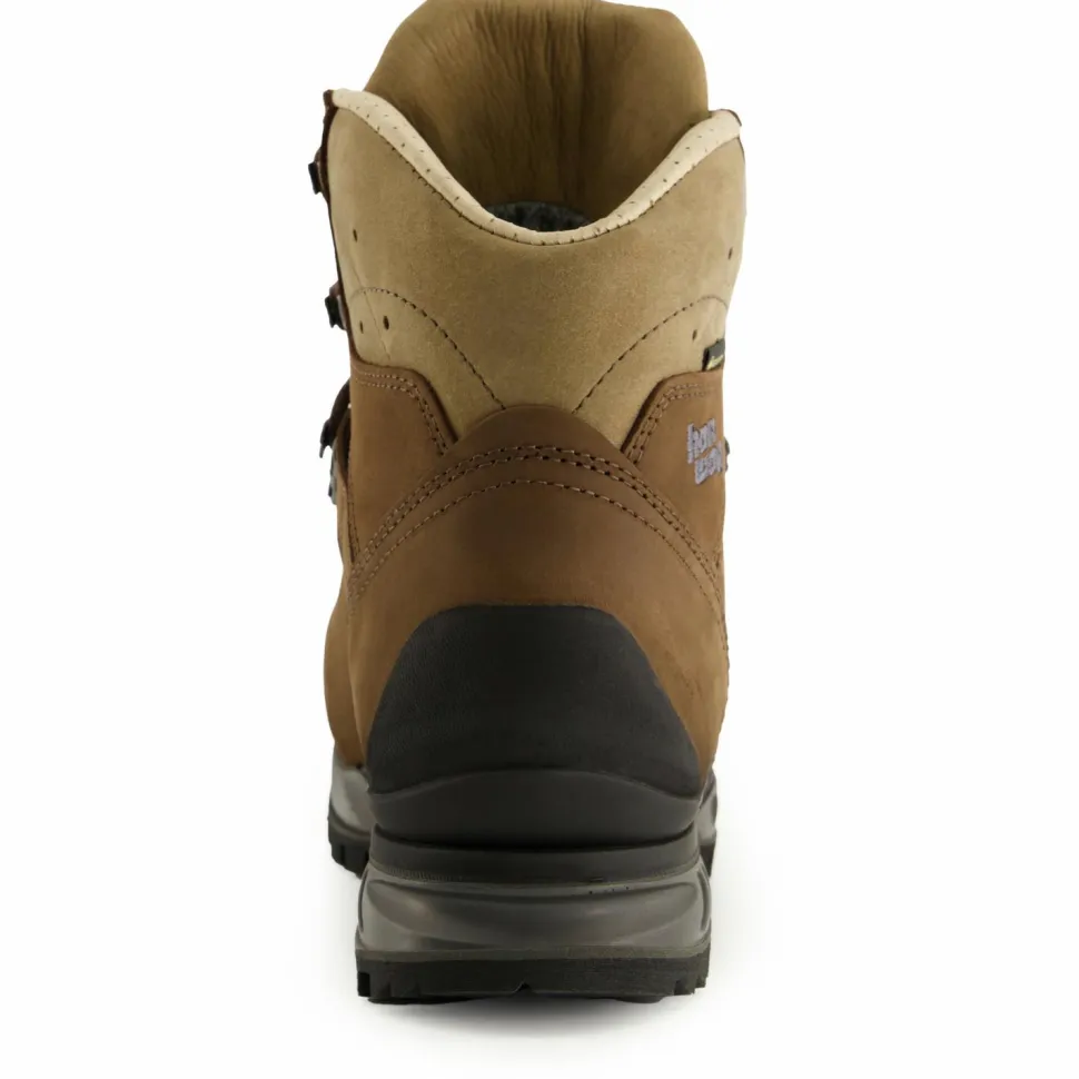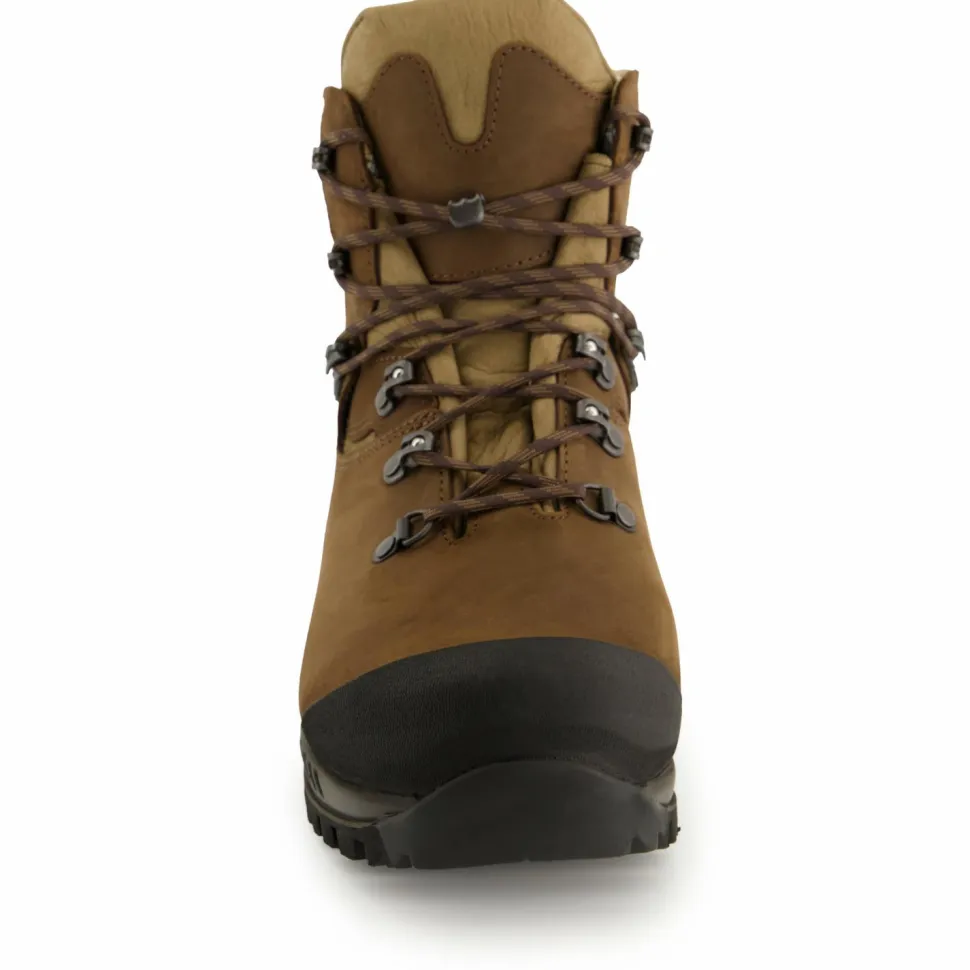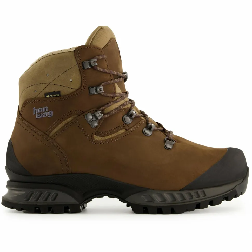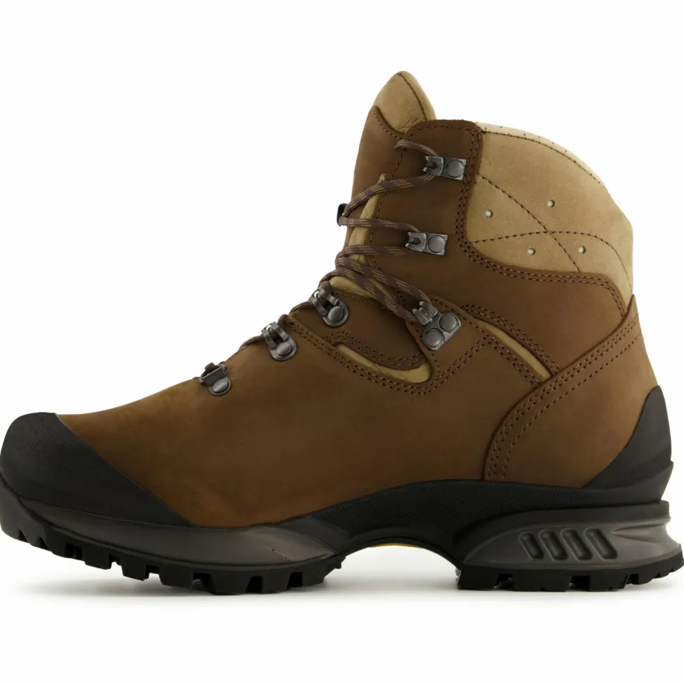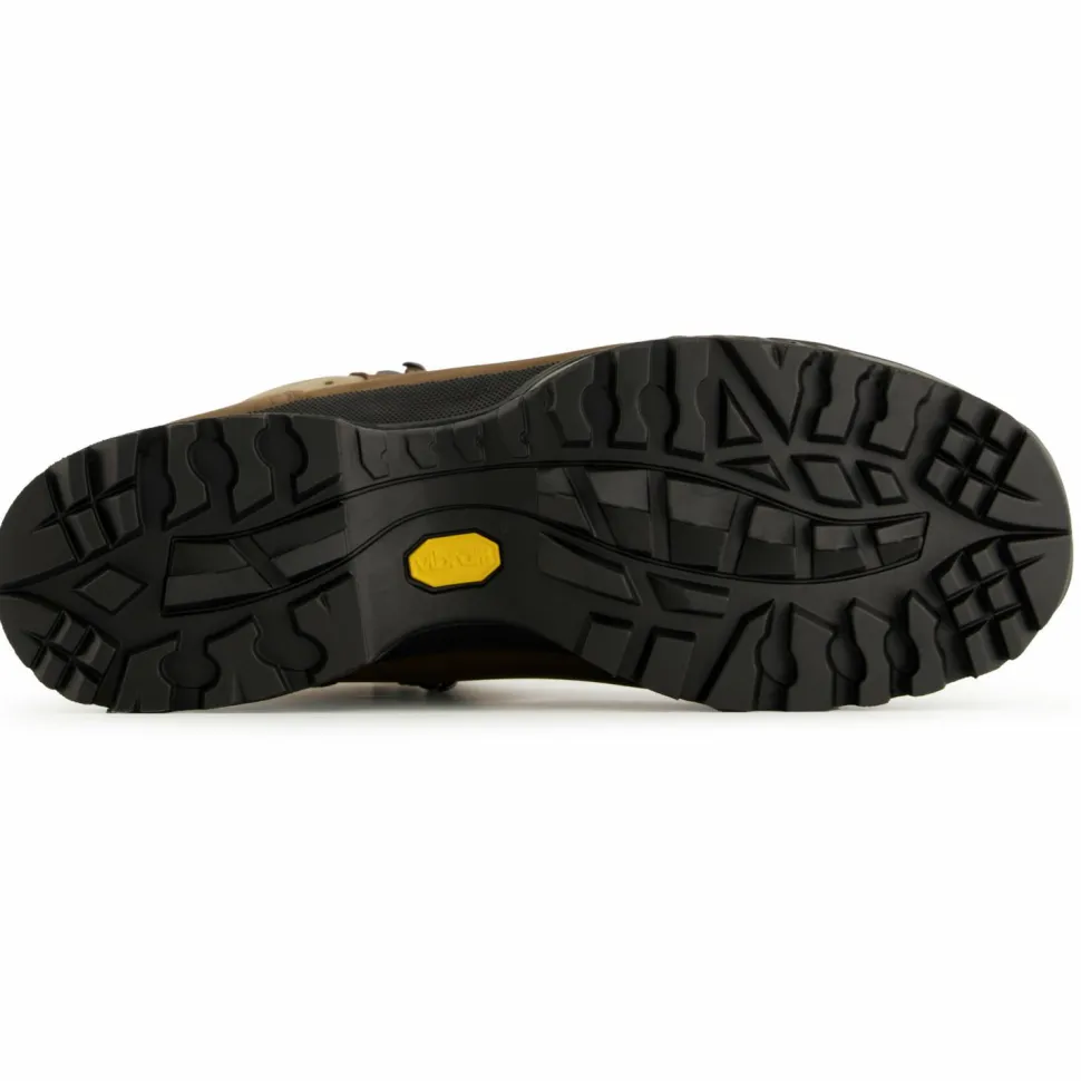 Das Wanderschuhmodell Tatra II Bunion GTX von Hanwag ist speziell für Wanderer mit Hallux Valgus. So bietet er im Bereich des Großzehengelenks besonders viel Raum. Der Schuh besteht aus nachhaltig produziertem Terracare Zero Leder mit einem weichen Schaftabschluss, der durch Belüftungsöffnungen ventiliert wird. Dank GORE-TEX-Membran ist der Schuh atmungsaktiv und wasserdicht – das Klima im Schuh ist prima. Trotz des weichen Schaftabschlusses offeriert der Tatra II Bunion GTX genügend Halt, vor allem dank der Zwei-Zonenschnürung mit Click Clamps und den Zungenhaken, die das Verrutschen der Zunge verhindern. Das erhöht den Tragekomfort ebenso wie die komfortable Einlegesohle und die gute Dämpfung des Sohlenaufbaus. Die Vibramsohle bietet einen sehr guten Grip in unterschiedlichem Terrain. Hinzu kommt noch der Gummischutz an der Zehenbox und an der Ferse, der vor raschem Verschleiß schützt.