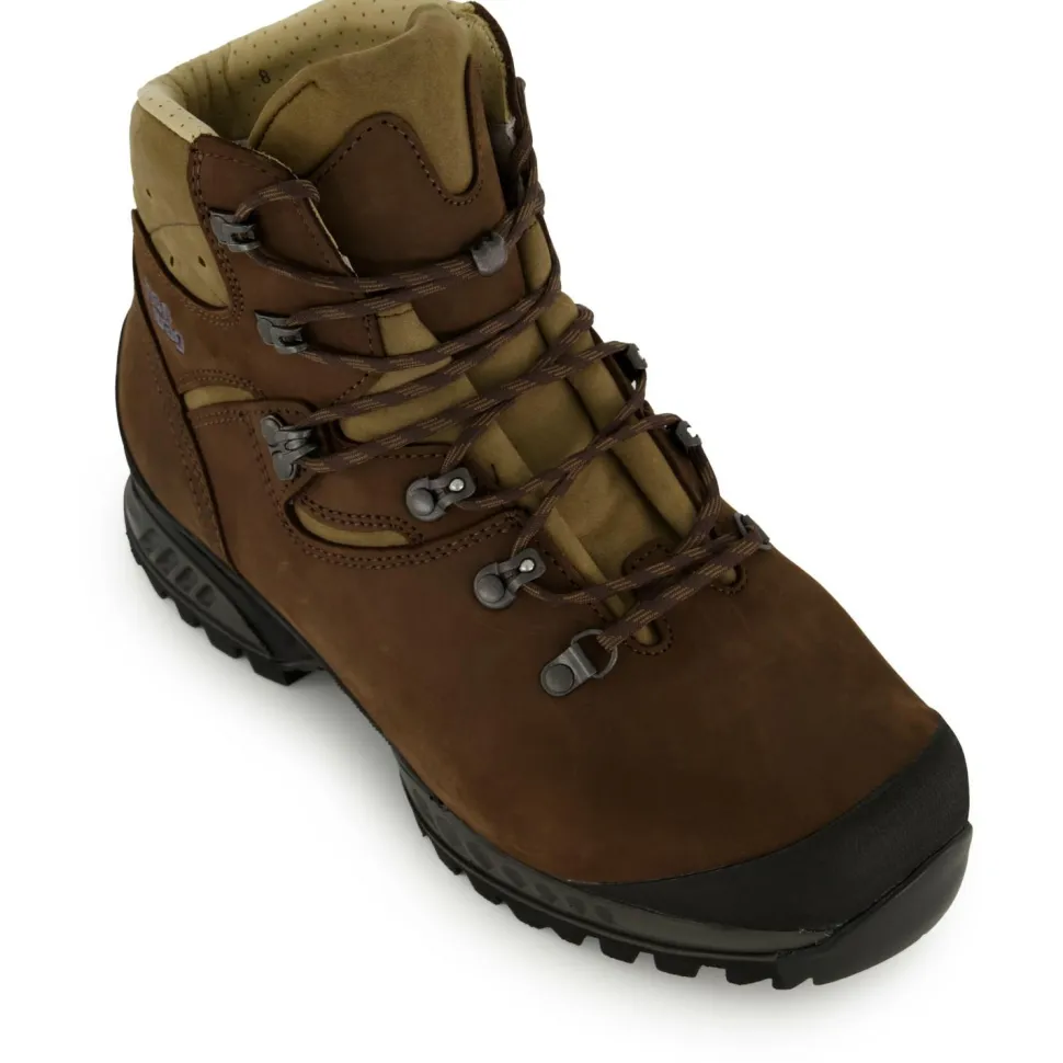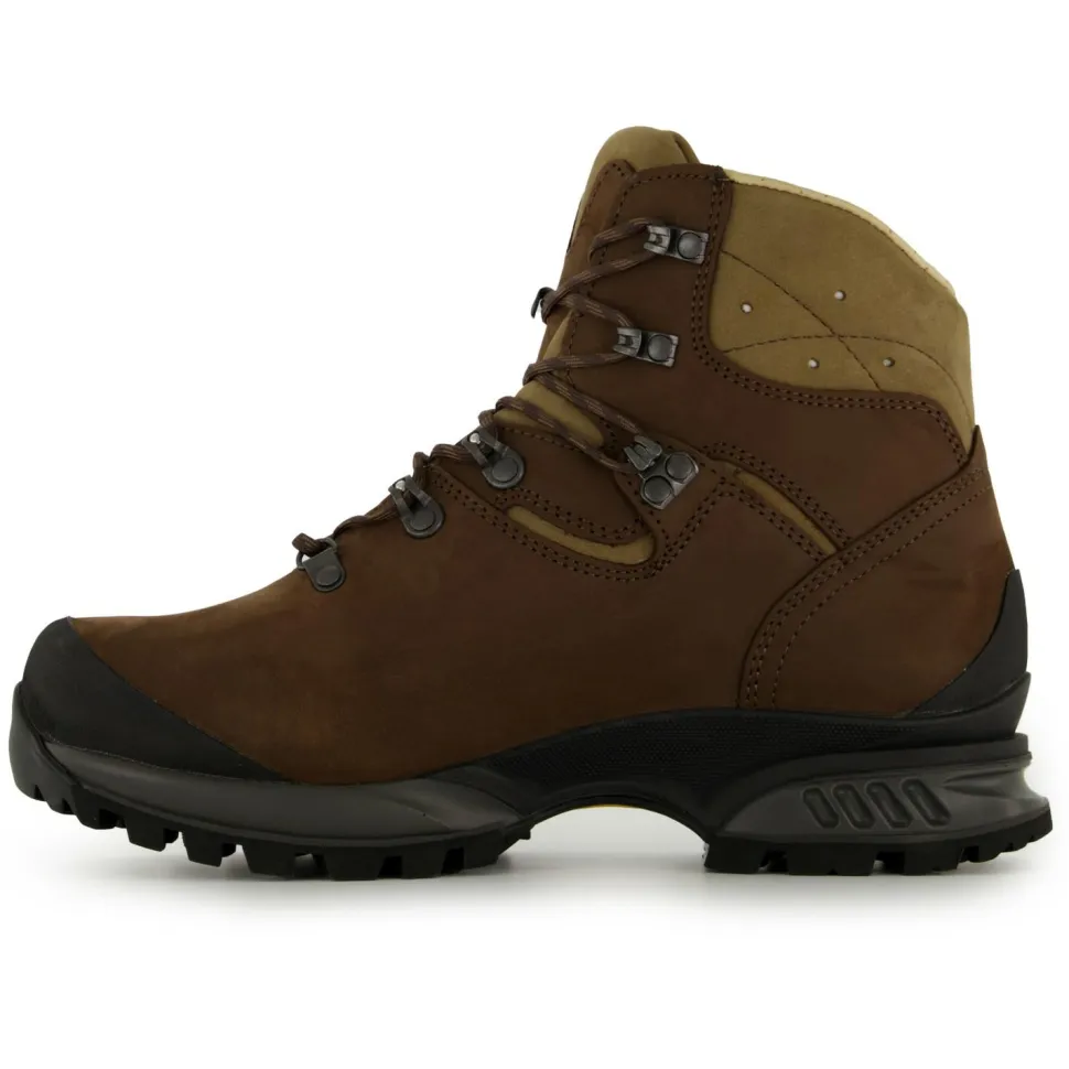 Tatra II Bunion heißt das Hanwag Wanderschuhmodell für Männer mit Hallux Valgus. Der Lederschuh aus hochwertigem und nachhaltig produziertem Terracare Zero Leder bietet viel Raum für das Großzehengelenk und ermöglicht so schmerzfreie Touren.Der Tatra II Bunion bietet aber mehr als das – der Trekkingschuh überzeugt durch guten Halt, dank seiner Zweizonenschnürung mit Click Clamps und seiner nicht verrutschbaren Zunge durch Zungenhaken. Der Schaftabschluss besteht ebenfalls aus angenehm weichem Leder, lässt trotz seiner Stabiliät Raum für Bewegung im Schaft und hat Belüftungslöcher, die für ein angenehmes Klima sorgen im Schuh. Die Vibramsohle AW Integral steht mit ihrer Gummimischung und den Stollen für Halt auf unterschiedlichsten Böden, die gute Sohlendämpfung schützt hingegen vor qualmenden Socken auf langen Asphaltstrecken.