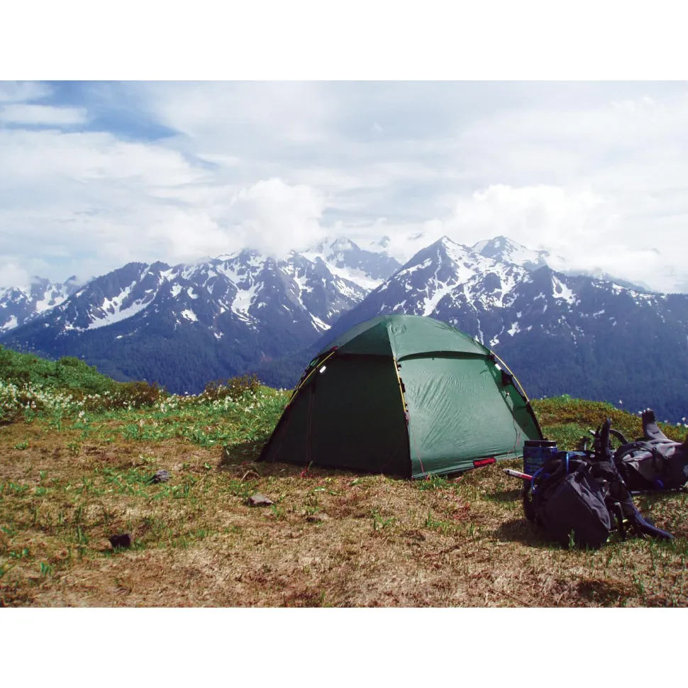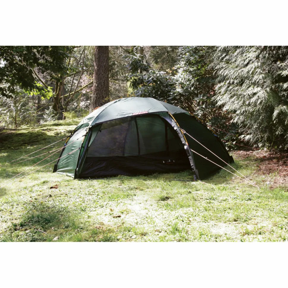 Schon auf den ersten Blick wird beim Allak 3 von Hilleberg klar, dass man es hier mit einem echten Profi unter den Trekking-Zelten zu tun hat. Ob zum Wandern, Trekking, Boot-Fahren oder auf Wintereinsätzen. Das Zelt eignet sich für den ganzjährigen Einsatz und kennt bei der Aktivitäten-Auswahl nahezu keine Grenzen. Der große Vorteil des Zelts sind neben seinen zwei geräumigen Eingängen, dass es von alleine stehen kann und keine Heringe nötig sind, um dem Zelt einen stabilen und sicheren Stand zu ermöglichen.Somit ist es mit nur 3 Stangen in Kurzzeit aufzubauen. Das geräumige Innenleben des Zelts bietet angenehmen Platz für drei Personen, die durch die funktionalen Materialien vor Wind und Wetter geschützt werden. Durch die beiden Eingänge ist man nicht nur Standortflexibel und unabhängig, sondern hat gleichzeitig auch eine hervorragende Belüftungsmöglichkeit.Die integrierten Apsiden sind parallel zum Schlafbereich angeordnet. So ist das Gepäck leicht erreichbar und der Ein-und Ausstieg besonders leicht. Durch die Kopplung von Innen- und Außenzelt wird der Auf- und Abbau extrem beschleunigt. Die stabile Kuppelkonstruktion ist sehr robust gegen Wind und bietet eine geringe Angriffsfläche. Zudem hält es so bei einem Wintereinsatz auch größeren Schneemengen problemlos Stand. Das Außenzelt ist so geschnitten, dass es bis zum Boden reicht. Zusätzlich sind sie mit Zugschlaufen versehen, die nach Belieben eingestellt werden können. Die Türen sind zusätzlich mit Moskitonetzen ausgestattet, was eine Belüftung ohne nervige kleine Besucher ermöglicht.
