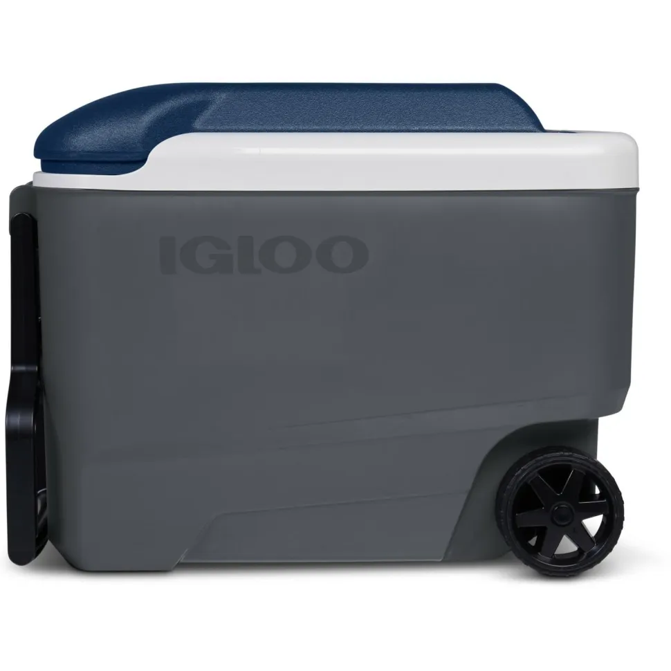 Stabil ist die Kühlbox Maxcold 40 Roller von IGLOO! Dank großen Rollen und Griff kannst Du sie einfach ziehen und merkst dabei kein Gewicht. Zudem ist die Box mit zwei Halterungen für Becher oder Flaschen ausgestattet. Der THERMECOOL Schaumstoff isoliert zuverlässig. Bis zu fünf Tage bleibt der Inhalt der Box kalt. Ein Allrounder zum Reisen!