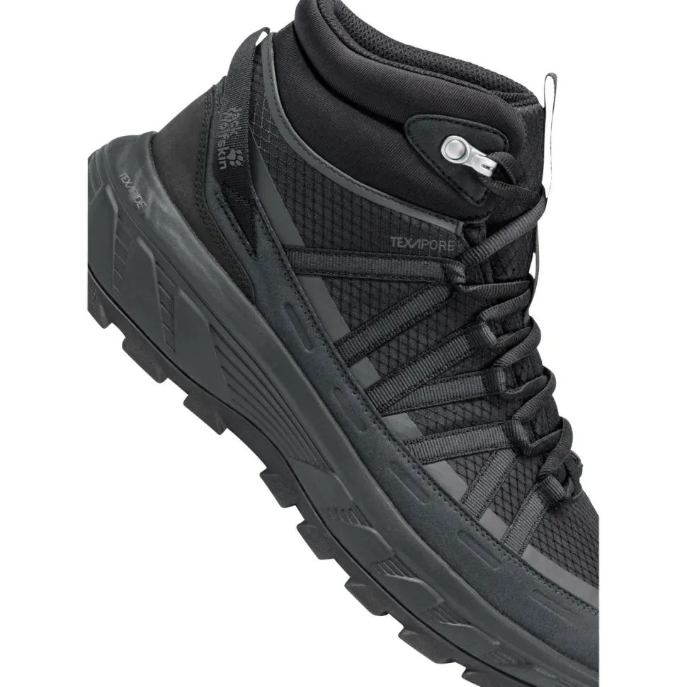 Mit dem Wild Hike Texapore Mid von Jack Wolfskin bist Du bestens vorbereitet für jedes Wetter am Berg. Die eigens entwickelte Texapore-Membran macht den Schuh komplett wasserdicht und winddicht, ohne dass dabei die Atmungsaktivität verloren geht – so bleiben Deine Füße trocken und wohltemperiert, egal ob bei Sonnenschein oder plötzlichem Regen. Das leichte Synthetikmaterial trägt dazu bei, dass sich der Schuh angenehm unbeschwert trägt.