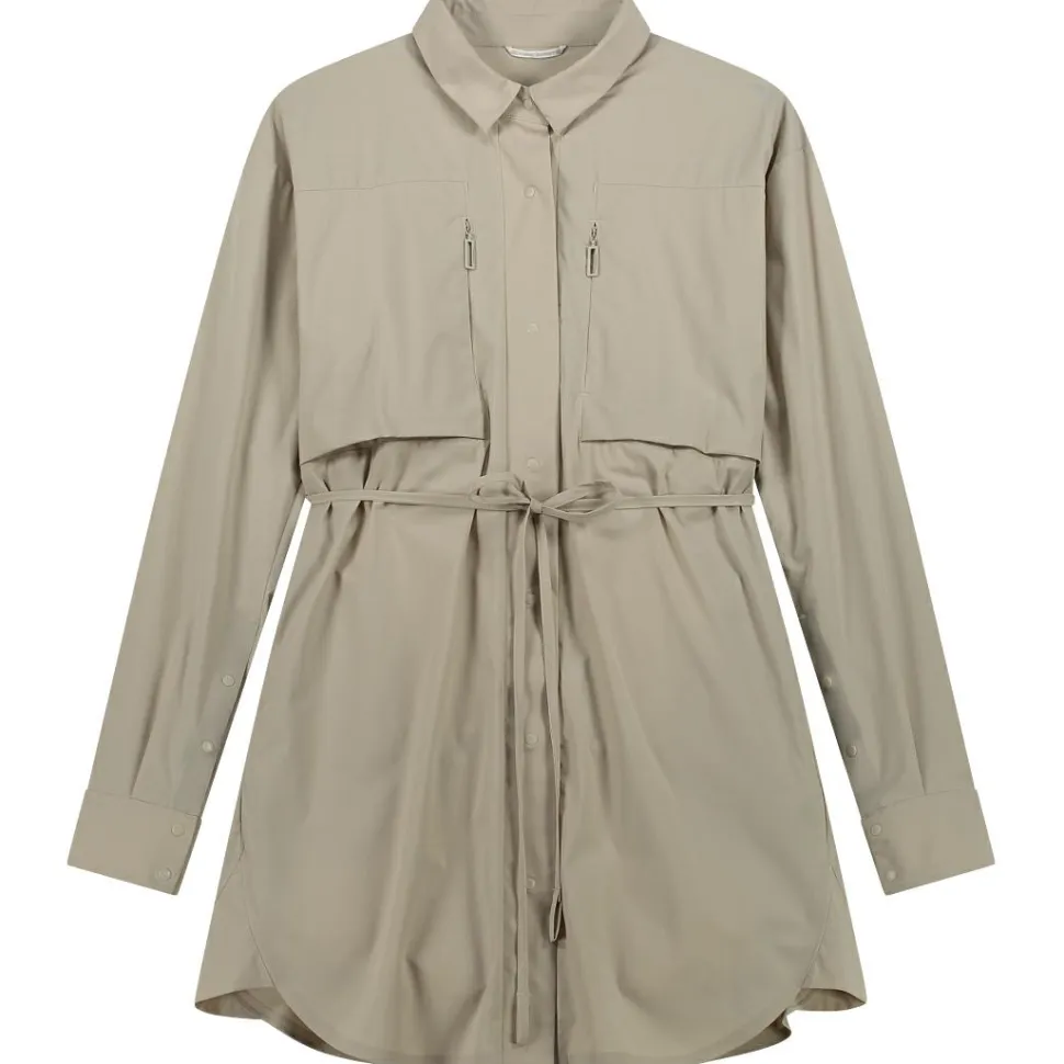 Das Women’s Sumatra Long Shirt von Jeanne Baret ist ein cooles, lang geschnittenes Hemd im Sahara-Stil mit einer lässigen Oversize-Passform. Es besteht aus einem wasserabweisenden und schnell trocknenden Material, daher trotzt es jeglichem Wetter und dank des 4-Wege-Stretch wird eine uneingeschränkte Bewegungsfreiheit geboten. Durch den verstellbaren Taillenbund lässt sich die Silhouette individuell anpassen. Funktionale Details wie zwei großzügige Brusttaschen mit unsichtbarem Reißverschluss sowie zusätzliche Taschen auf Taillenhöhe bieten praktischen Stauraum. Die geschweißten Nähte und thermo-adhesiven elastischen Falten auf der Rückseite sorgen für eine moderne, cleane Optik. Eine durchgehende Ton-in-Ton-Druckknopfleiste und verstellbare Manschetten verleihen dem Look eine feminine Eleganz. Vielseitig kombinierbar – als leichtes Sommerkleid oder stilvolles Layering-Piece für urbane Abenteuer.