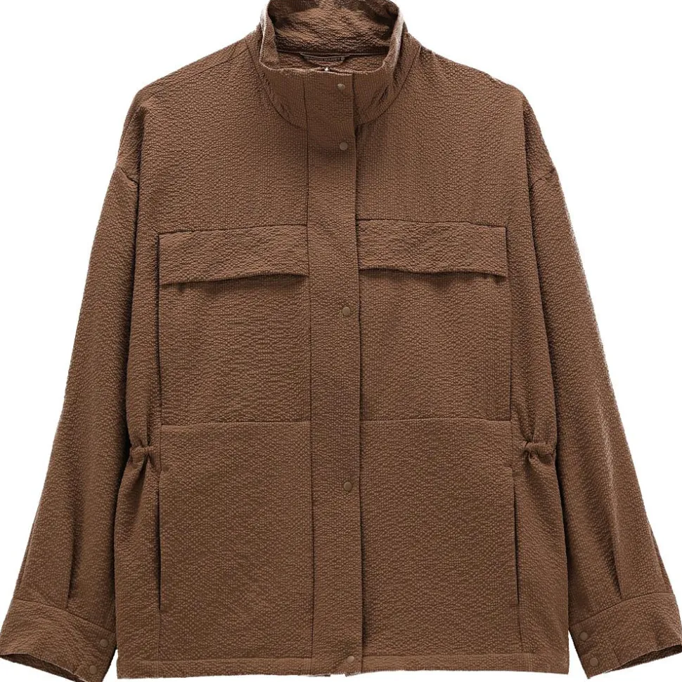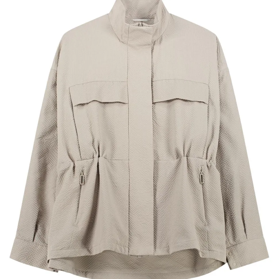 Funktionale Taschen auf Brust- und Hüfthöhe mit unsichtbaren Reißverschlüssen bieten genügend Platz für wichtige Utensilien, die man gerne bei sich trägt. Der innenliegende Kordelzug ermöglicht eine flexible Taillenanpassung, für einen individuellen Sitz. Die vorgeformten Oversize-Ärmel lassen sich mit einem innenliegenden Band und Druckknopf lässig hochkrempeln. Ein dezentes Gummilogo auf der Schulter setzt einen modernen Akzent. Genial für einen entspannten, aber stylischen Look im Alltag.