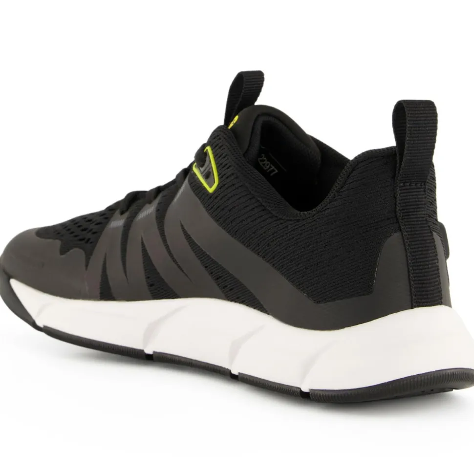 Das Obermaterial besteht aus luftigem Mesh-Material und bietet eine hervorragende Atmungsaktivität. Leichte Verstärkungen im Mittelfußbereich und an der Schuhspitze bieten Schutz vor Steinen oder Dornen am Wegesrand. Die nur 10 mm hohe Zwischensohle aus weichem EVA-Schaumstoff bietet eine leichte Dämpfung und ein sehr direktes Laufgefühl. Die Laufsohle aus Michelin-Gummi ist extrem abriebfest und garantiert auch auf nassem Asphalt sicheren Halt.