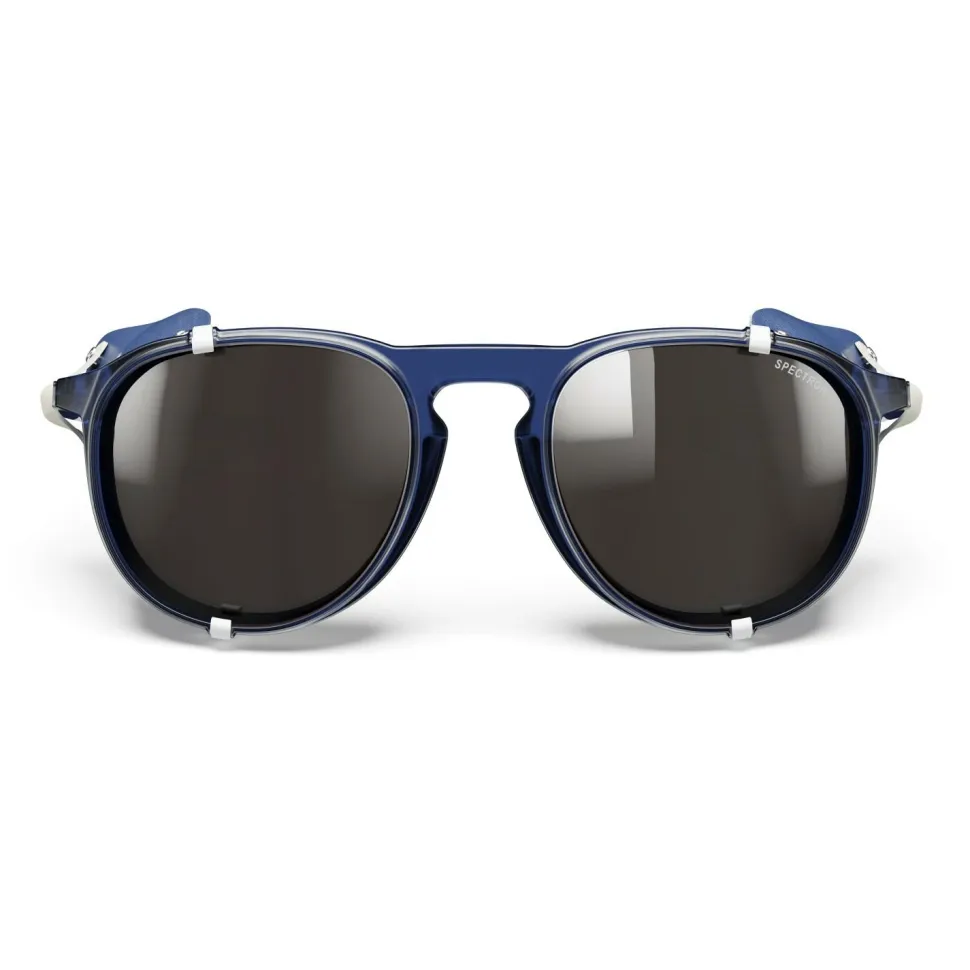 Egal ob Skitour oder Hochtour, die Millenium Spectron S4 (VLT 5%) von Julbo ist mit von der Partie! Diese Gletscherbrille wurde auf die Verwendung im Hochgebirge ausgelegt, kann aber auch darüber hinaus punkten. Der Rahmen ist dabei äußerst robust und sitzt aufgrund der beschichteten und gewölbten Bügel immer sicher und angenehm. Die abnehmbaren Seitenteile sorgen zuverlässig dafür, dass kein grelles Licht hinter die Brille gelangt. In dieser Ausführung entsprechen die Gläser der Kategorie 4 und sind somit auch für Tage mit grellem Sonnenschein bestens geeignet.