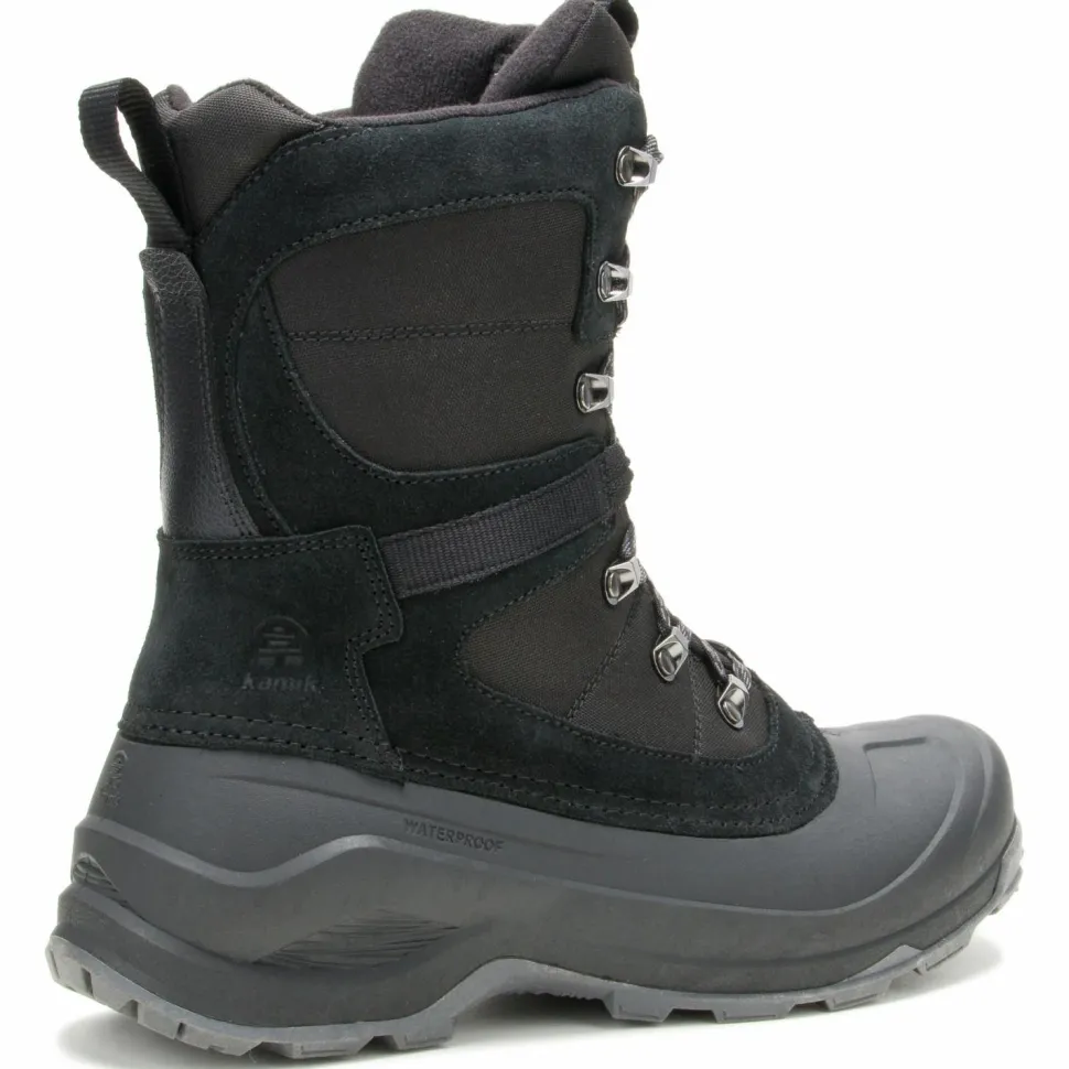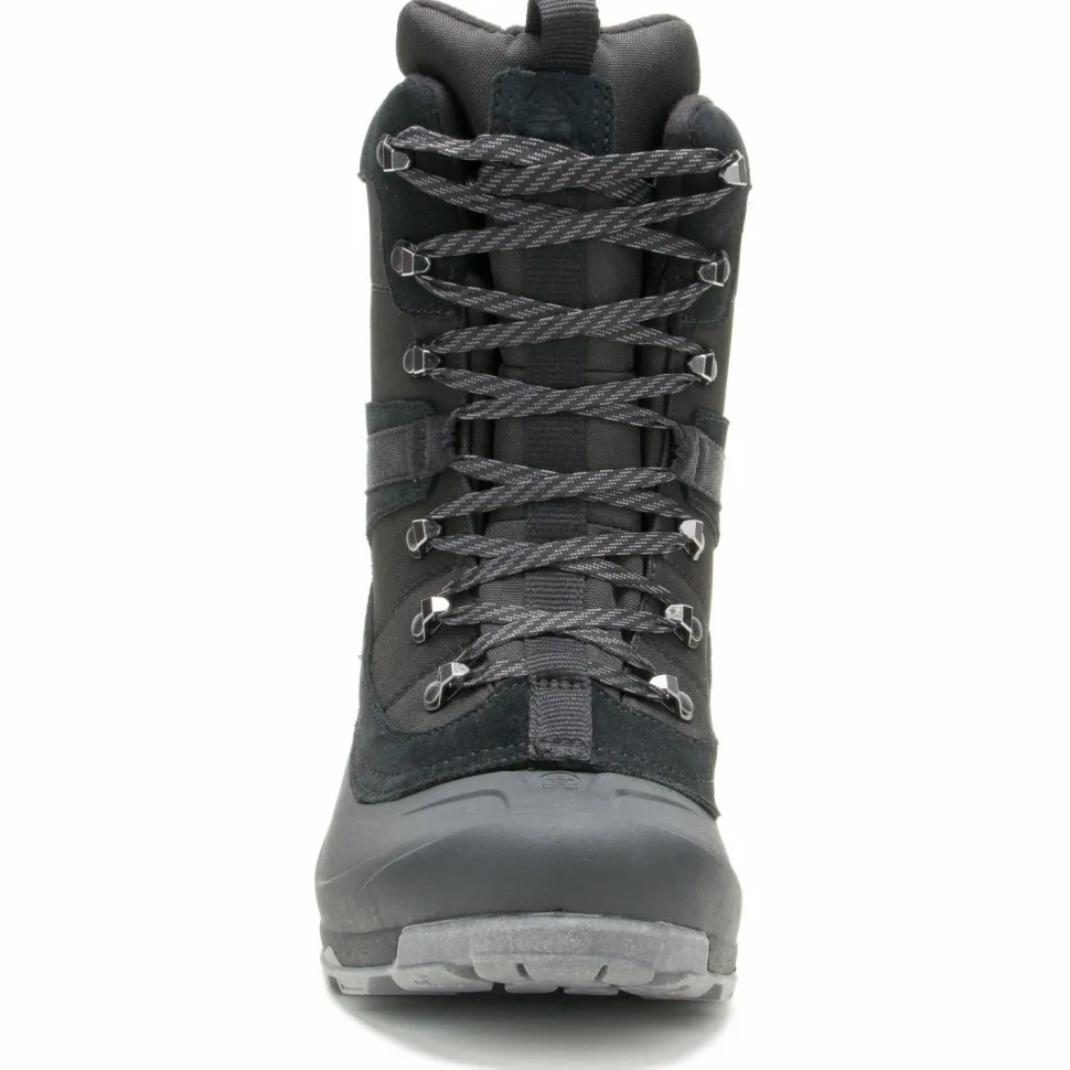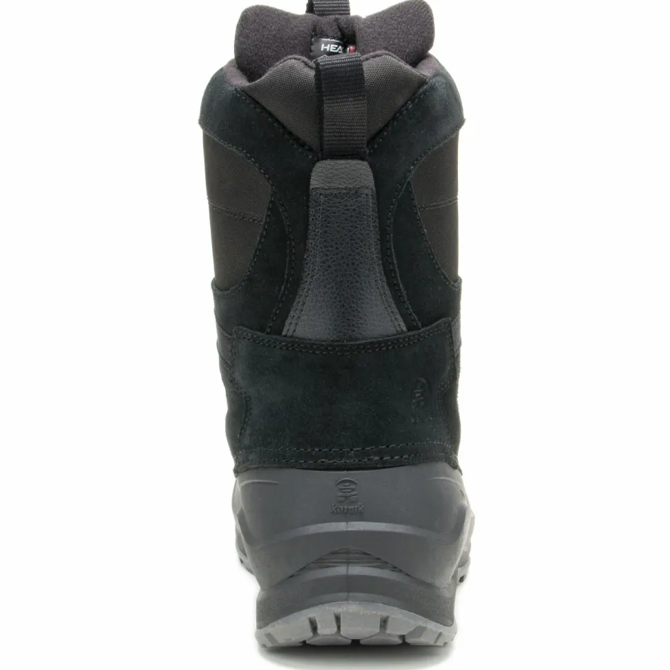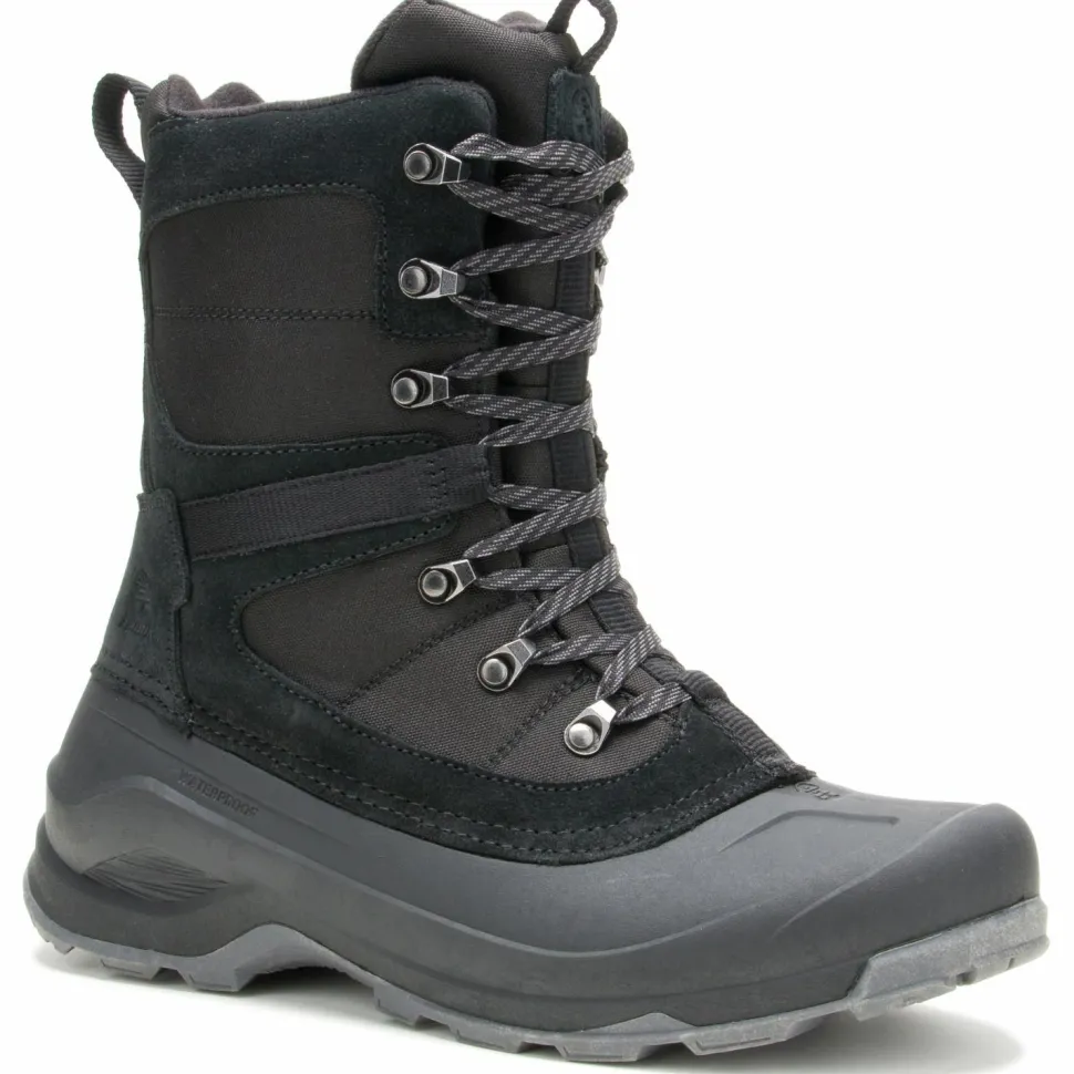 Durch die praktischen Anziehschlaufen im Fersenbereich lassen sich die Schuhe selbst mit kalten Händen bequem anziehen. Im unteren Bereich sind die Winterstiefel aus robustem Gummi gefertigt. Im oberen Teil sind die Winterschuhe aus weichem Leder hergestellt. Durch abgeklebte Nähte sind die Freizeitschuhe wasserdicht und lassen keine Nässe eindringen. Die Schnürung ist mit mehreren Zughaken ausgestattet, damit die Kamik Empire X bei jeder Wintertour bequem an Deinen Fuß sitzen.