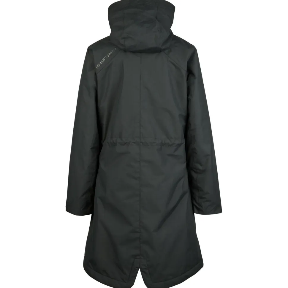 Der sehr hohe Kragen geht über das Kinn direkt in die Kapuze über, wodurch kriechende Kälte kaum eine Chance hat. Die winddichte Eigenschaft des Materials wird durch einen breiten mit Knöpfen fixierbaren Saum noch verstärkt, wodurch schlechtes Wetter draußen bleibt. Neben Handwärmertaschen auf Hüfthöhe, verfügt der Mantel über eine Innentasche und zwei Brusttaschen, in denen sich Wichtiges sicher verstauen lässt. Der Women’s Tesdal Parka von Kari Traa ist damit immer eine sichere Wahl!