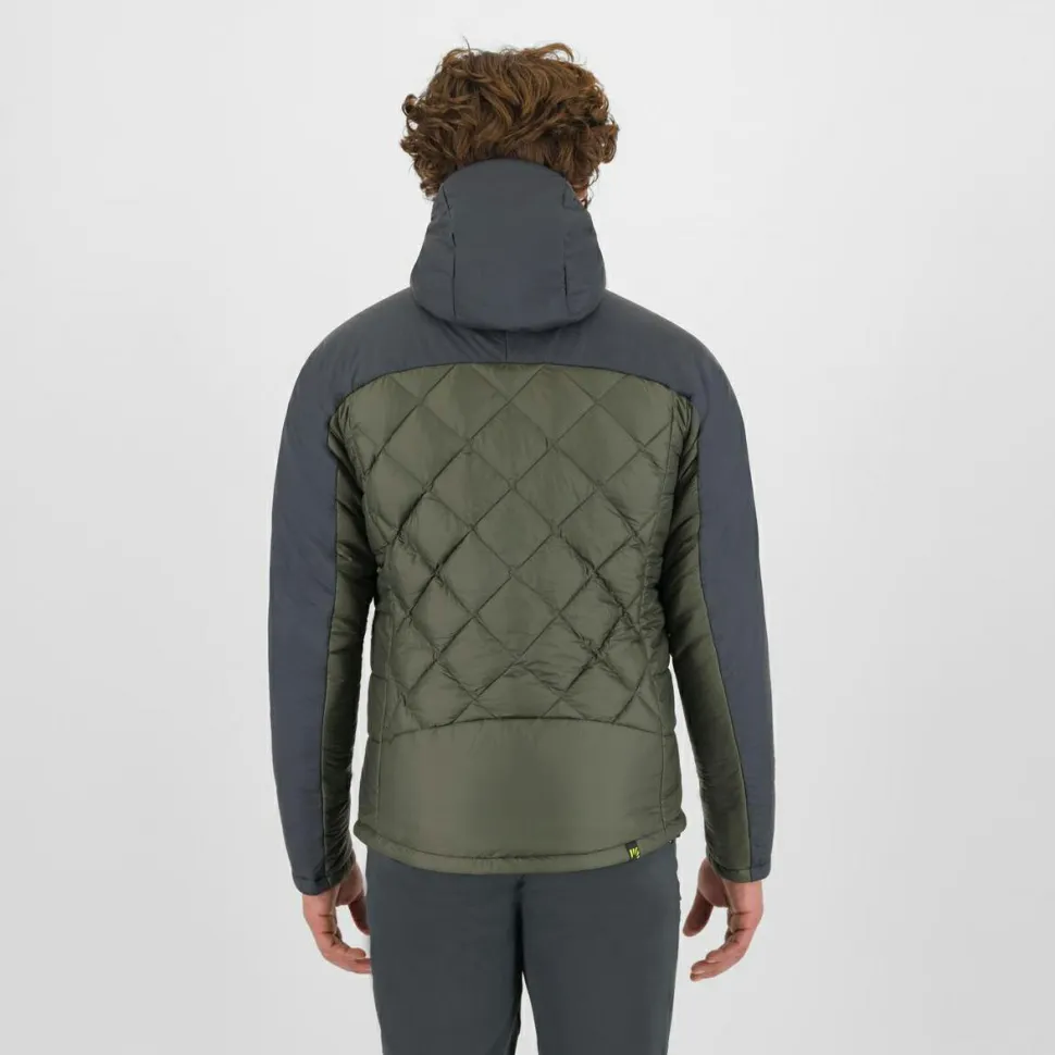 Die Lastei Up Jacket von Karpos ist eine wetterfeste und wintertaugliche Kunstfaserjacke mit Top-Ausstattung. An Schultern, Kapuze und Rumpf besteht sie aus wasserdichtem K-Dry-Material, während die Vorder- und Rückseite mit Pertex Quantum Gewebe aufwarten, das absolut zuverlässig vor Wind schützt und gleichzeitig hervorragende Atmungsaktivität bietet. Beide Materialien haben eine PFC-freie DWR-Behandlung, die dauerhaft gegen das Eindringen von Feuchtigkeit schützt. Hinzu kommt außerdem eine hervorragende Wärmeisolierung dank Hybrid-Wattierung, die aus PrimaLoft Silver Active an Ärmeln, Kapuze, Seiten und Saum sowie K-Synthetic Down Micro in der Mitte besteht. Beide Wattierungen sind vollständig recycelt.