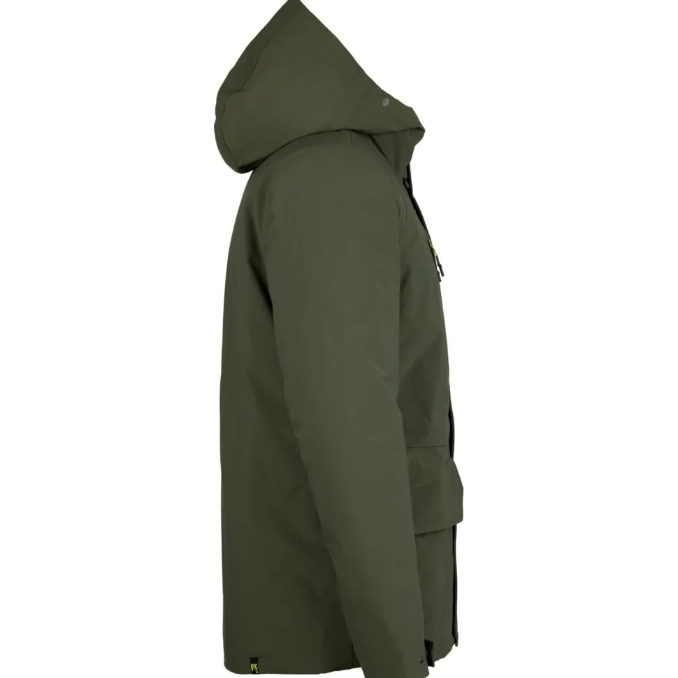 Zur sinnvoll abgestimmten Ausstattung gehören der verstellbare Kordelzug vorne und hinten an der Kapuze, der robuste Frontreißverschluss mit Patte und Knopfleiste sowie die Verstellmöglichkeiten an Saum und Ärmelenden. Damit bleibt die gut sitzende Passform auch bei längeren Touren aufrecht erhalten. Hinzu kommen die geräumigen Taschen, die die Hände warm halten und alle unterwegs benötigten Kleinigkeiten griffbereit aufbewahren.