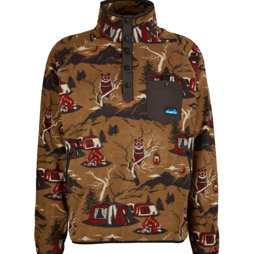 Den Teannaway Fleecepullover von KAVU kannst Du in der Uni, zu Hause oder beim Wandern tragen – er wird Dich überall wärmen. Mit seiner halblangen Knopfleiste und dem Print erinnert er an den Style der 80er und verleiht Dir einen lässigen Retro-Look.