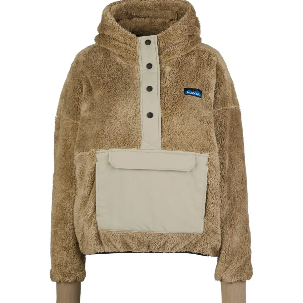 Ziest Du Dir den Women’s Moon Ridge Fleecepullover von KAVU über, wirst Du Dich direkt wohlfühlen! Der dicke, flauschige Sherpa-Fleece liegt weich auf Deiner Haut und wärmt Dich effektiv. Damit keine Kälte von unten hereinziehen kann, sind der Saum und die Ärmel mit elastischen, enganliegenden Abschlüssen versehen.