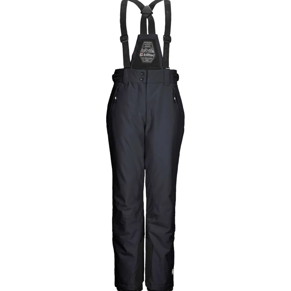 Dank der Hosenträger bleibt die Skihose an Ort und Stelle und hält selbst wilden Abfahrten stand. Die Hosenträger sind außerdem individuell verstellbar. Der Hüftbund kann individuell an die Hüfte angepasst werden. Damit schmiegt sich die Skihose angenehm an den kindlichen Körper an. Dank der beiden Seitentaschen mit Reißverschluss bietet die Skihose Platz, um wichtige Dinge schnell und sicher zu verstauen. Damit haben kleine Abenteurer die Hände frei. Der Doppeldruckknopf kann schnell und einfach geöffnet und geschlossen werden. Dadurch kann die Skihose auch von Kindern schnell und einfach an- und ausgezogen werden. Eine Skihose, die rundum überzeugt – die Girl’s KSW 213 Ski Pants von killtec.