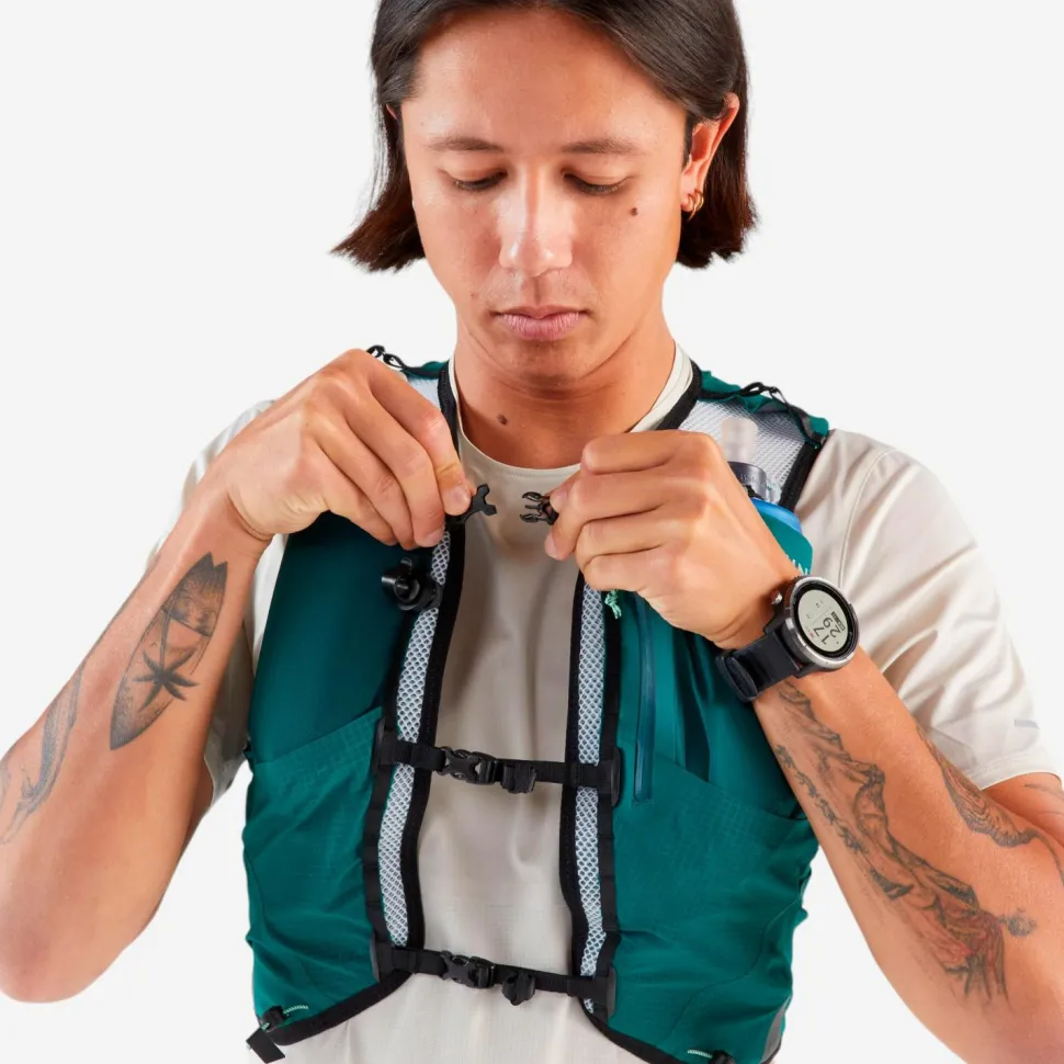 Ob für lange Trailläufe oder intensive Wettkämpfe – dieser Trailrunningrucksach bietet Dir genau das, was Du brauchst: Stauraum, Stabilität und schnellen Zugriff auf Flüssigkeit. Mit nur 240 g Leergewicht sitzt er federleicht auf Deinem Rücken und bleibt durch die verstellbaren Gurte auch in anspruchsvollem Gelände sicher an Ort und Stelle.