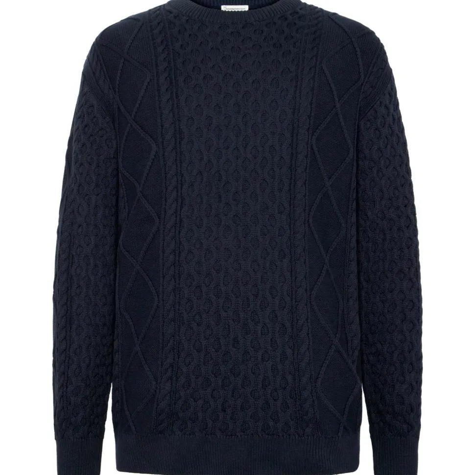 Der Cotton Cable Crew Neck von KnowledgeCotton Apparel macht es Dir leicht, Dich rundum wohlzufühlen. Der klassische Rundhalsausschnitt liegt angenehm am Hals an, während die Strickbündchen an Ärmeln und Saum für einen verlässlichen Sitz sorgen – so bleibt alles da, wo es hingehört. Egal ob Du entspannt durch die Stadt schlenderst oder mit Freunden im Café sitzt: Dieser Wollpullover begleitet Dich komfortabel durch den Tag.