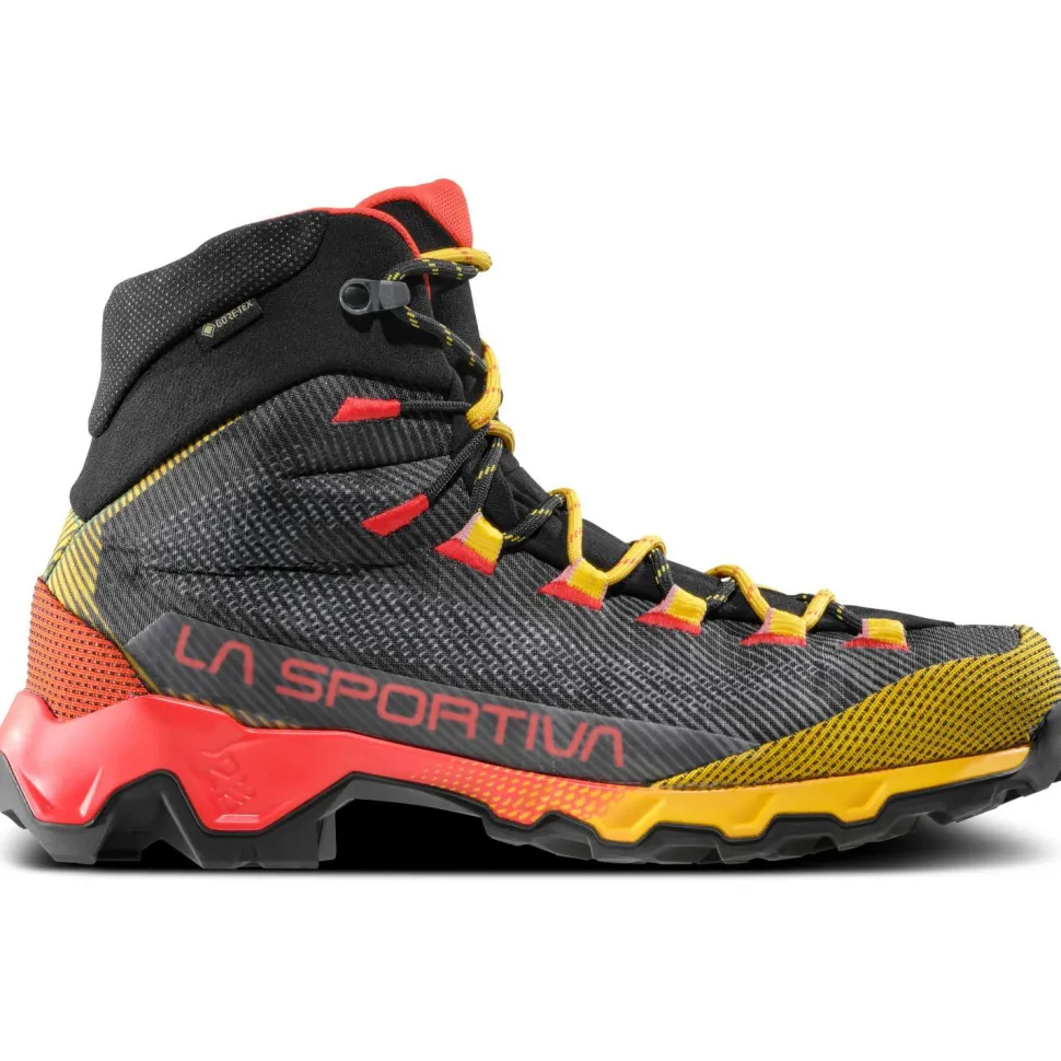 Die Aequilibrium Hike GTX von La Sportiva bringen alles mit, was Du für anspruchsvolle Bergwanderungen brauchst! Die mittelhohen Wanderschuhe besitzen ein synthetisches Obermaterial mit atmungsaktiven Eigenschaften, das trotz seiner Leichtigkeit ein hohes Maß an Strapazierfähigkeit bietet. Die integrierte GORE-TEX Extended Comfort Membran macht die Schuhe einhundert Prozent wasserdicht, ohne Abstriche in Sachen Tragekomfort zu machen. Darüber hinaus sorgt das patentierte 3D Flex System für mehr Flexibilität im Knöchelbereich, während die innovative Double Heel Fersenkonstruktion zusätzlichen Halt bietet.