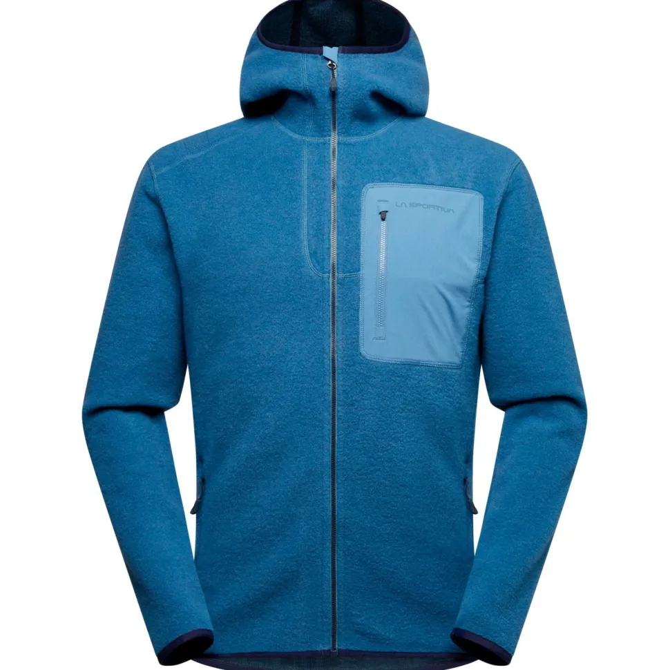 Der Agon Hoody von La Sportiva ist eine superbequeme und leichte Thermojacke, die sich ideal für den Zustieg und Klettersessions im Herbst und Winter eignet. Das Material verleiht der Jacke ihre technischen Eigenschaften und dank der verwendeten Wolle ein angenehmes, natürliches Tragegefühl. Kunstfasern machen das Gewebe langlebig, schnell trocknend und atmungsaktiv. Die Taschen und die Kapuze sind stylish und praktisch zugleich. Die bequeme Kapuze ist mit einem elastischem Saum versehen, der sich hervorragende an das Gesicht anpasst. In den beiden Fronttaschen und der Brusttasche lassen sich kleine Gegenstände sinnvoll verstauen.