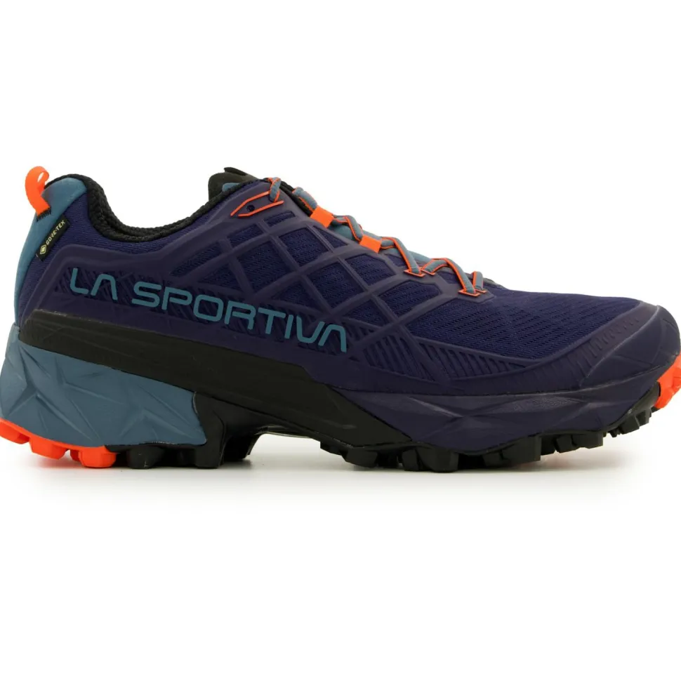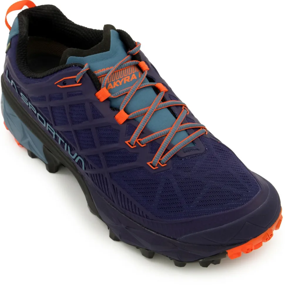Perfekt für Trainingsläufe, Tagestouren und steile Höhenmeter: die Akyra II GTX Multisportschuhe von La Sportiva! Die sportlichen Multitalente sind abseits der geteerten Wege sowohl leicht und schnell als auch komfortabel und verlässlich robust unterwegs. Möglich macht es die Kombination aus gemäßigt steifem, atmungsaktiven 3D-Grid-Obermaterial aus KPU mit den Dual Compound Frixion Red Sohlen. Letztere sorgen dank Impact Brake System für optimale Traktion, bieten Stabilität und Schutz und fördern das natürliche Abrollen des Fußes.