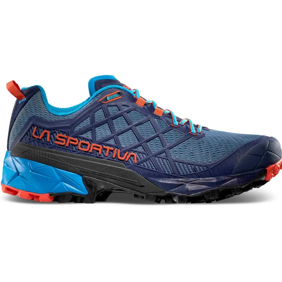 Perfekt für Trainingsläufe, Tagestouren und steile Höhenmeter: die Akyra II Multisportschuhe von La Sportiva! Die sportlichen Multitalente sind abseits der geteerten Wege nicht nur leicht und schnell unterwegs, sondern auch komfortabel und verlässlich robust. Möglich macht es die Kombination aus gemäßigt steifem, atmungsaktiven 3D-Grid-Obermaterial aus KPU mit den Dual Compound Frixion Red Sohlen. Letztere sorgen dank Impact Brake System für optimale Traktion, bieten Stabilität und Schutz und fördern dank des ebenfalls integrierten Trail Rocker Systems das natürliche Abrollen des Fußes.