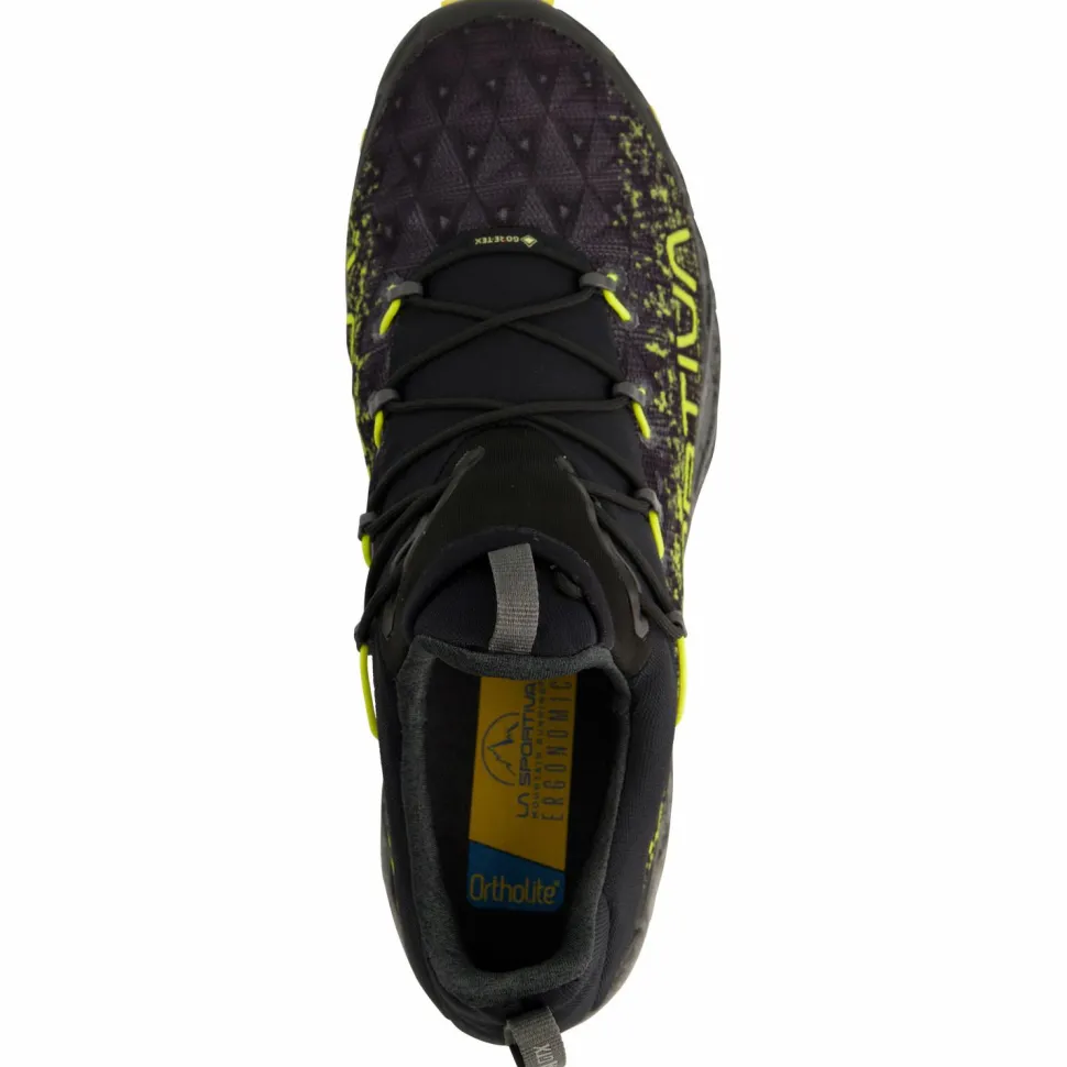 Trailrunner und Hobbyläufer, die griffige und wasserdichte Laufschuhe für die kalten und nassen Jahreszeiten suchen, sollten sich die Tempesta GTX von La Sportiva anschauen. Diese Schuhe zeichnen sich durch ihre vielseitige Sohle, hohe Stabilität und eine wasserdichte GORE-TEX-Membran aus.Das Single-Mesh-Obermaterial ist wasserabweisend und besitzt einen sockenartigen Kragen mit Schnellschnürung. Das erleichtert nicht nur das Anziehen der Schuhe, sondern erhöht auch den Tragekomfort. TPU-Elemente an den Schuhspitzen machen die Schuhe widerstandsfähiger. Das GORE-TEX-Futter in Gore-Flex-Construction ist atmungsaktiv, wasserdicht und soll wie der Name schon sagt die Flexibilität der Schuhe garantieren. Ortholite-Fußbett und die EVA-Zwischensohle mit Torsions-Stabilisator sorgen für Isolation, Dämpfung und Stabilität. Die griffige FriXion-AT-Sohle gibt Halt auf unterschiedlichsten weichen Untergründen, sei es Waldboden, Matsch, Schneematsch oder trockener Schnee. Zudem ist die Sohle mit AT-Grip-Spikes kompatibel, um auch auf vereisten Böden sicher und schnell laufen zu können.Die Trailrunningschuhe Tempesta GTX sind wirklich vielseitige Begleiter in Herbst, Winter, Frühling und bei Bergläufen.