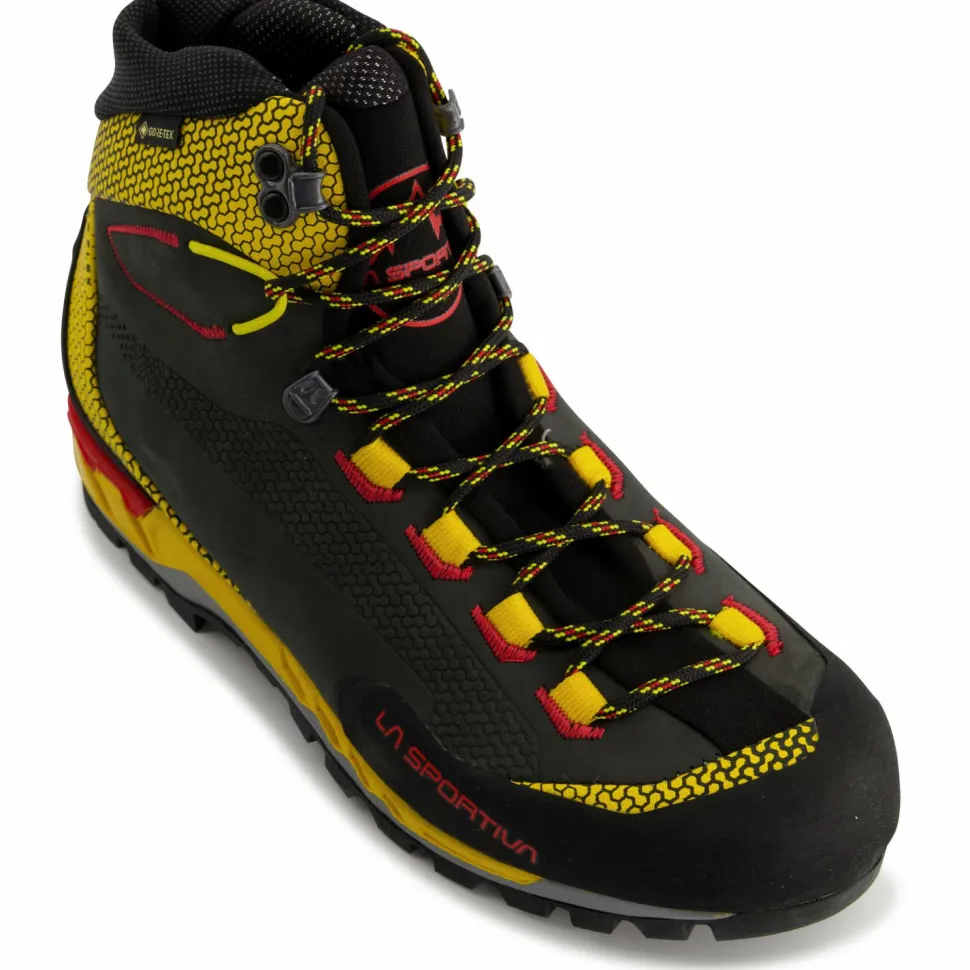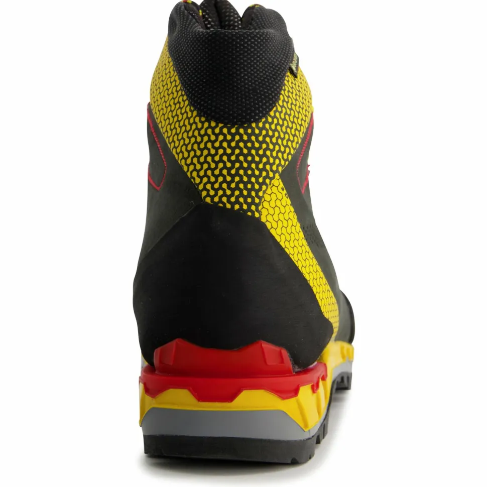 Die Trango Tech Leather GTX Bergschuhe von La Sportiva sind mit einer abriebfesten und besonders rutschfesten La Sportiva Cube Sohle ausgestattet, die vom Sohlenspezialist Vibram für La Sportiva entwickelt und produziert wird. Mit seinem TPU Einsatz an der Ferse ist der Alpinschuh bestens für den Einsatz von Steigeisen mit Kipphebelbindung vorbereitet. Schuhspitze und Ferse sind dafür mit einer robusten Schutzschicht aus PU verstärkt, die auch bestens vor Steinen und Geröll schützt. Die Sohlenkonstruktion der Trango Tech Leather GTX wird durch eine Polyurethan Zwischensohle und eine 4 mm PPE Brandsohle mit Glasfaserverstärkung ergänzt.
