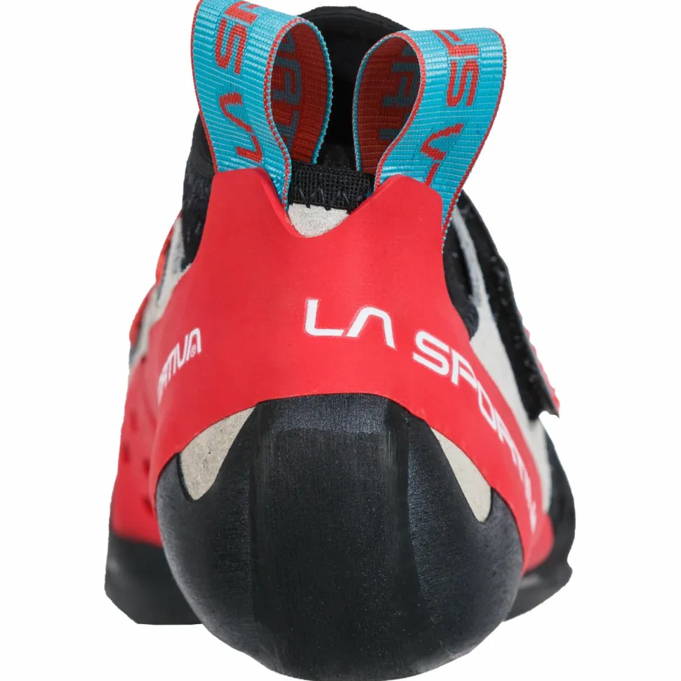 Ein Klettverschluss hält die Schuhe in Position und ermöglicht außerdem das schnelle Aus- und Anziehen während eines Klettertags. Weitreichende Gummierungen geben den Schuhen zusätzliche Stabilität und schützen gleichzeitig das Obermaterial. Besonders: Die Ferse und der Zehenbereich wurden bei diesem Modell verstärkt und ermöglichen so das zuverlässige Hooken. Gerade bei den schwierigen Toehooks sorgt die Gummierung im Zehenbereich für eine optimierte Unterstützung. Bei der Ferse hingegen wurde auf ein schmales Profile geachtet, was wiederum das präzise Setzen von Heelhooks erleichtert.