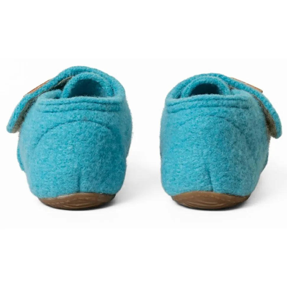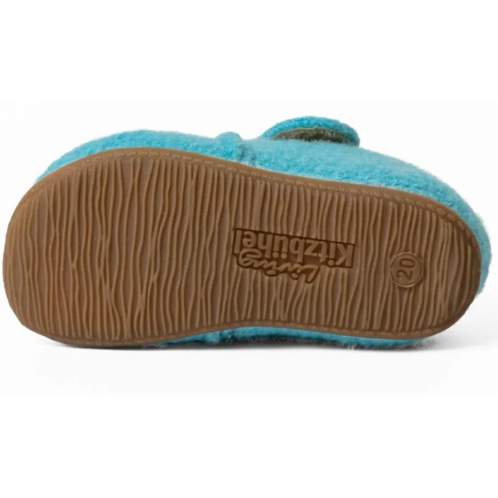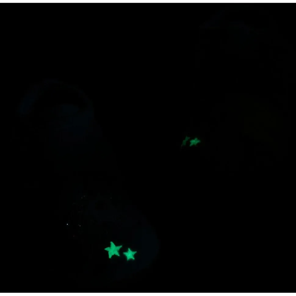 Dank knöchelhohem Schaft bietet der Schuh einen sicheren Sitz, während der weit zu öffnende Klettverschluss das An- und Ausziehen erleichtert. Die rutschfeste Naturkautschuksohle in Naturfarbe gibt Halt auf glatten Böden. Das Highlight: Die aufgenähte Applikation leuchtet im Dunkeln und macht den Hausschuh zum echten Hingucker.