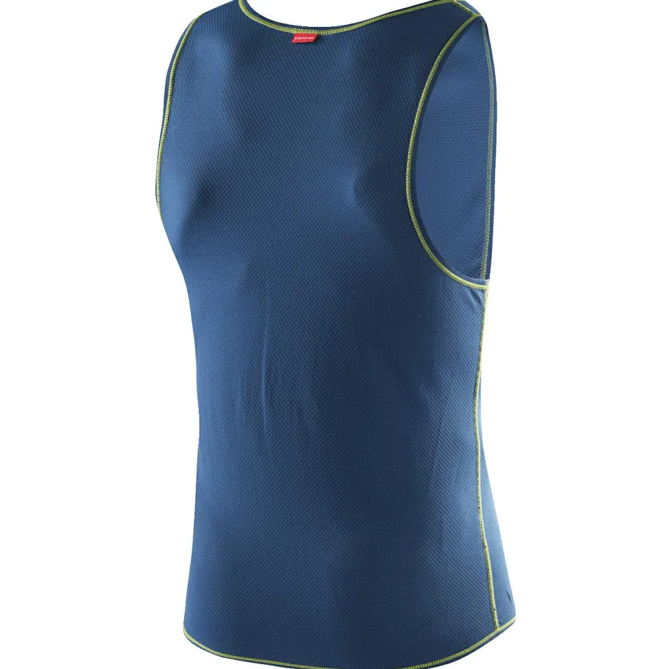 Die Singlet Transtex Light Kunstfaserunterwäsche von Löffler unterstützt bei schweißtreibenden Sporteinheiten. Das ärmellose Unterhemd besteht aus Kunstfaser in neuem Strickdesign und ist angenehm weich zur Haut. Das leichte Material transportiert Feuchtigkeit sehr schnell nach außen ab und erreicht dadurch eine zügige Trocknung. Außerdem ist die Kunstfaser luftdurchlässig, was für eine gute Zirkulation sorgt. Die Funktionsunterwäsche eignet sich für den ganzjährigen Einsatz. Der weite Rundhalsschnitt bietet angenehmen Tragekomfort. Ebenso die sehr weichen Flachnähte, die auf der Haut kaum zu spüren sind.