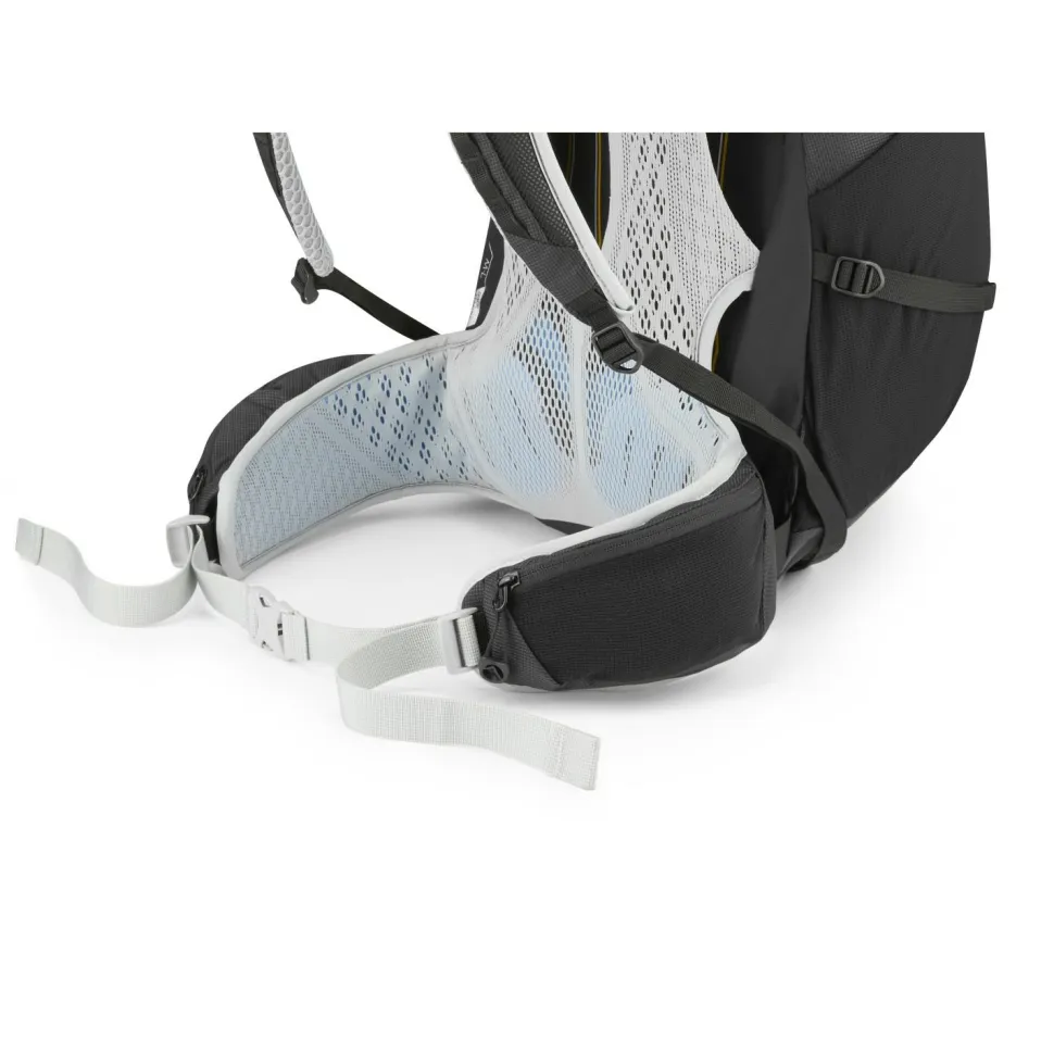 Das voll einstellbare AirZone+ Tragesystem mit patentierter FormKnit-Technologie sorgt für optimale Belüftung und hohen Tragekomfort, selbst bei schweißtreibenden Touren. Der Hüftgurt mit Vorwärtszug erleichtert die Anpassung, während die gepolsterten Hüftgurttaschen Platz für Snacks oder Kompass bieten. Praktische Details wie die Befestigung für Eispickel, Halterung für Trekkingstöcke, große Stretch-Seitentaschen und ein Staufach vorne machen den Rucksack zum idealen Begleiter für aktive Outdoor-Abenteuer.