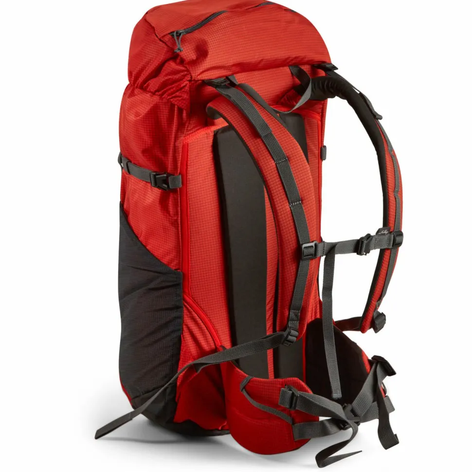 Beim Tragesystem kommt eine T-förmige Rahmenkonstruktion aus zwei leichten Aluminiumstreben zum Einsatz, die trotz ihres geringen Gewichts eine hervorragende Stabilität bieten. Die vertikale Alustrebe kann bei Bedarf auch entfernt werden, um etwas Tragekomfort für ca. 80 Gramm Gewichtsersparnis zu opfern. Der gepolsterte Hüftgurt garantiert eine optimale Druckverteilung, während das geräumige Deckelfach und die elastischen Seitentaschen eine ganze Reihe an zusätzlichen Verstau- und Organisationsmöglichkeiten bieten.