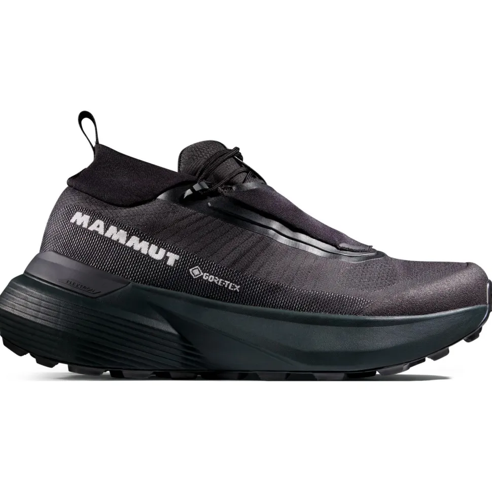 Neben der GORE-TEX Membran schützt eine PFC-freie DWR-Behandlung die Oberfläche der Aenergy Ultra Low GTX Multisportschuhe von Mammut. Außerdem gehören ein Geröllschutzrand aus Gummi, eine Zehenschutzkappe und eine abgedeckte Schnürung zur funktionellen Ausstattung der Outdoorschuhe.
