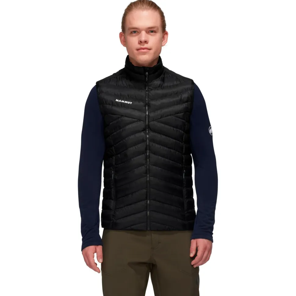 Mit einer warmen Füllung aus recycelten Plastikflaschen sorgt die Albula Insulation Vest von Mammut für optimale Isolation bei kühlem Wetter. Ob Wanderung, Freizeit, Sport oder im Alltag – die wärmende Kunstfaserweste aus Thermore Ecodown eignet sich auch für Feuchtigkeit sehr gut und isoliert selbst im feuchten Zustand. Zusätzlich schützt einen PFC-freie DWR-Behandlung die Weste vor Nässe. Die funktionelle Weste verfügt über zwei Seitentaschen mit Reißverschluss und schützt mit ihrem hohen Kragen auch den Hals sehr gut vor Wind und Kälte.