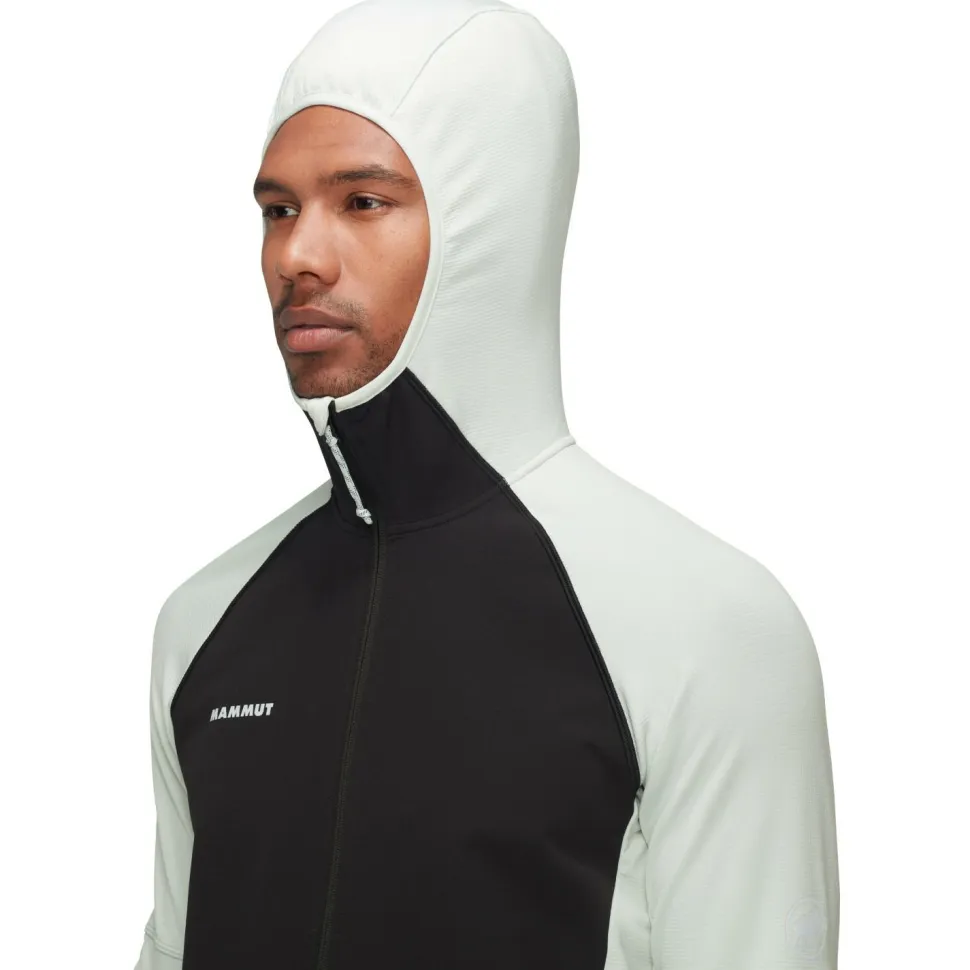 Als atmungsaktive und wärmende Zwischenschicht trägt sich die Massone Midlayer Hooded Jacket von Mammut ausgesprochen sportlich und komfortabel. Die Fleecejacke verfügt über Zwickeleinsätze unter den Armen und sorgt so für tolle Bewegungsfreiheit beim Klettern und Wandern. Mammut stattet die Jacke mit Raglanärmeln aus, so dass sie auch mit aufgesetztem Kletterrucksack oder Wanderrucksack optimal sitzt. Elastische Ärmelbündchen und ein einstellbarer Kordelzug am Jackensaum ergänzen die funktionelle Jacke. Die weiche Kapuze passt natürlich bestens unter den Kletterhelm.