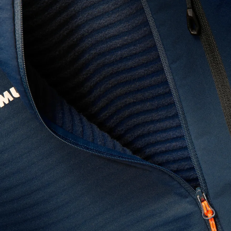 Die Mammut Midlayer aus Fleece ist mit flachen Nähten und sportlichen Daumenschlaufen ausgestattet. Zwickeleinsätze unter den Armen optimieren zusätzlich die Bewegungsfreiheit.