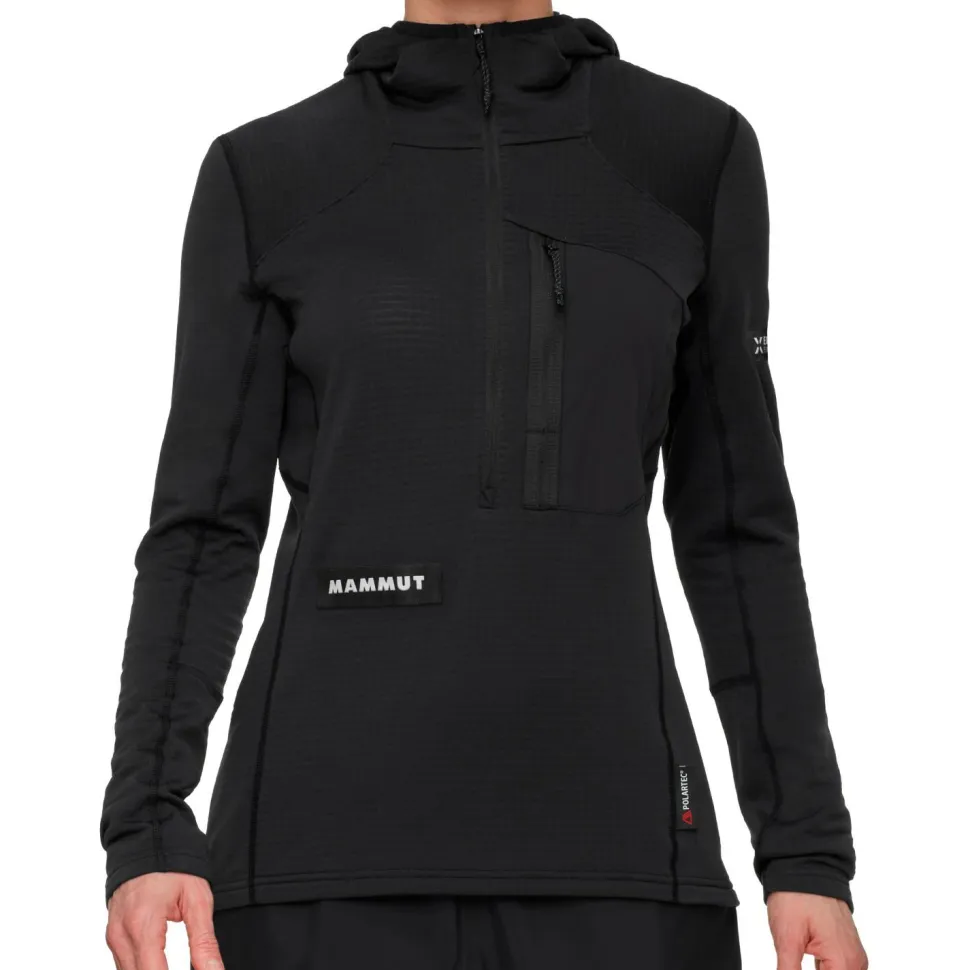 Die Women’s Eiger Nordwand Advanced First Layer Half Zip Fleecejacke von Mammut eignet sich für anspruchsvolle Einsätze beim Sport in den Bergen. Skitouren, Hochtouren oder Alpinklettern, die atmungsaktiven Materialien verhindern, dass es Dir zu warm wird, wenn die Schweißperlen ins Kullern kommen. Für eine uneingeschränkte Bewegungsfreiheit sind elastische Fasern verantwortlich. Diese bieten viel Platz bei komplexen sportlichen Manövern.