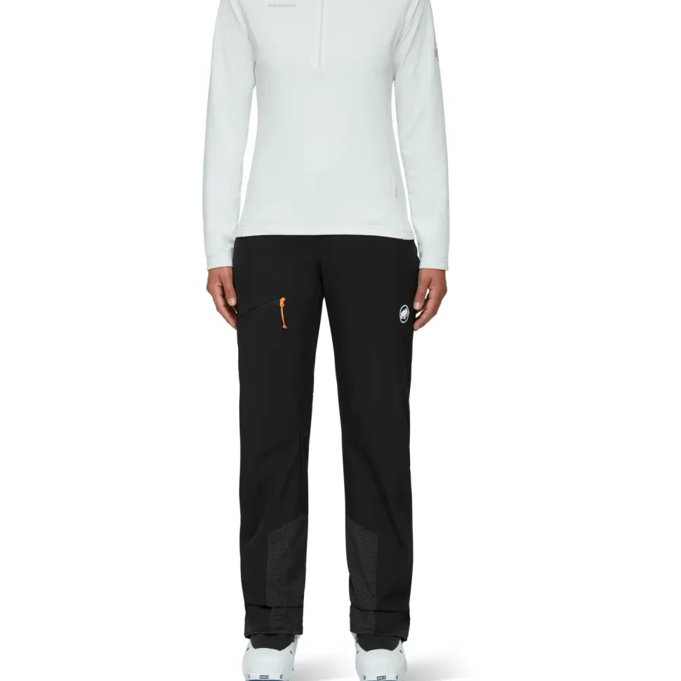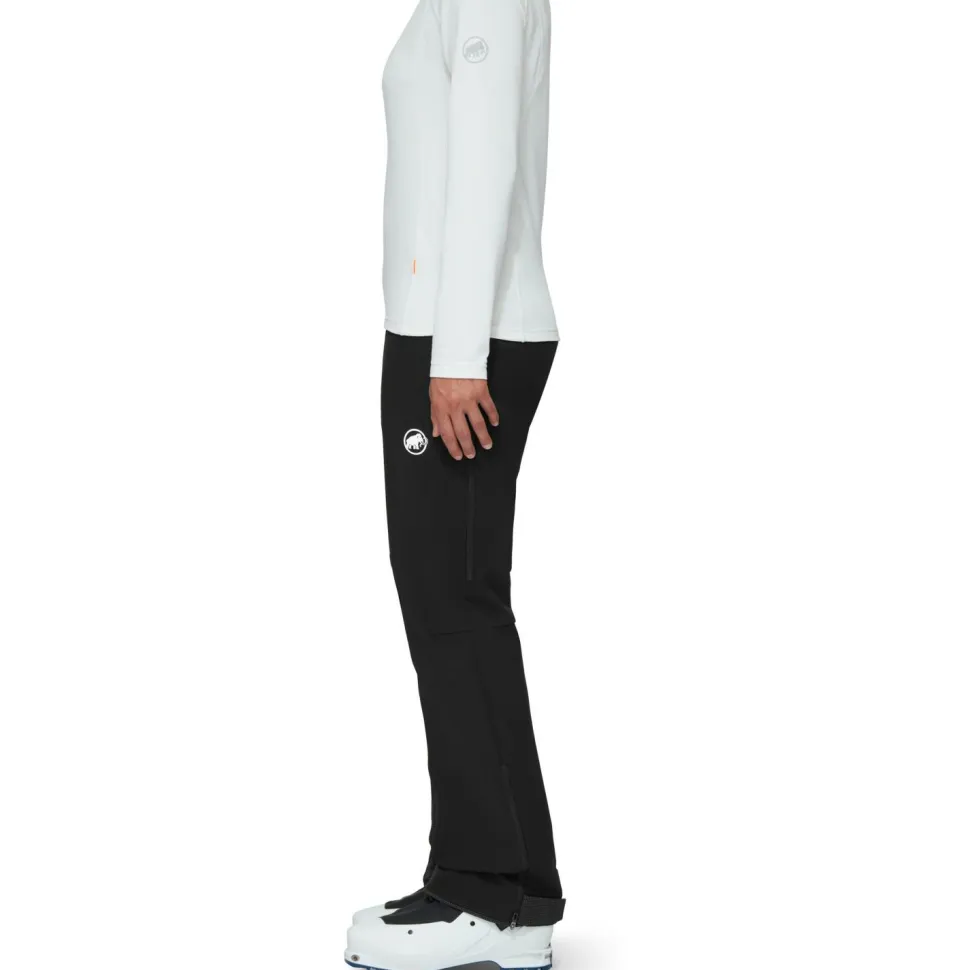 Die Women’s Taiss Guide Softshell Pants von Mammut setzt ein Zeichen für Wetterschutz. Neben den hervorragenden atmungsaktiven und schnelltrocknenden Materialien punktet sie mit wasserabweisenden Eigenschaften. Perfekt fürs Skitourengehen. Wenn Du Dich darauf verlassen möchtest, dass Du nicht ins Schwitzen gerätst, auch wenn die Spitzkehren zum Gipfel sich scheinbar unendlich in die Länge ziehen, ist die Women’s Taiss Guide Softshell Pants perfekt geeignet. Manuell kannst Du zusätzlich für frische Luft sorgen, indem die beiden Belüftungs-Reißverschlüsse an den Beinen geöffnet werden.
