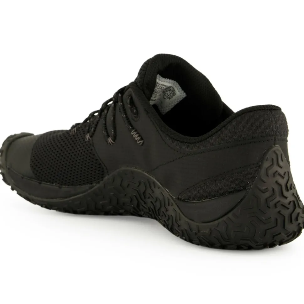 Die Trail Glove 7 Trailrunningschuhe von Merrell unterstützen Deinen Fuß in seiner natürlichen Abrollbewegung und machen jeden Lauf auf den Trails zu einer komfortablen Angelegenheit. Die Barfußschuhe sind flach konstruiert und mit einer Sprengung von null Millimetern ausgestattet. Die Laufschuhe können problemlos ohne Socken getragen werden und passen sich durch das elastische Gewebe an Deinen Fuß an. Das besonders atmungsaktive Mesh-Gewebe transportiert Feuchtigkeit gezielt nach außen hin ab und ist rasch wieder trocken.