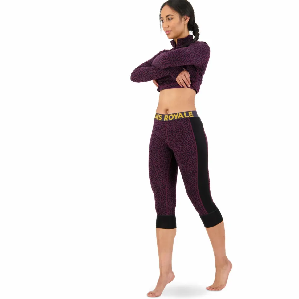 Die Women’s Cascade Merino Flex 200 3/4 Legging von Mons Royale ist eine funktionale Leggings, die sich bestens für wintersportliche Aktivitäten eignet – ganz egal, ob zum Skifahren, Snowboarden, auf Skitour, zum Winterwandern oder Schneeschuhwandern. Die Leggings kommt dabei in einem tollen Materialmix aus Merinowolle und Kunstfaser. So trägt sie sich einerseits super angenehm auf der Haut, andererseits ist sie auch noch extrem funktional.