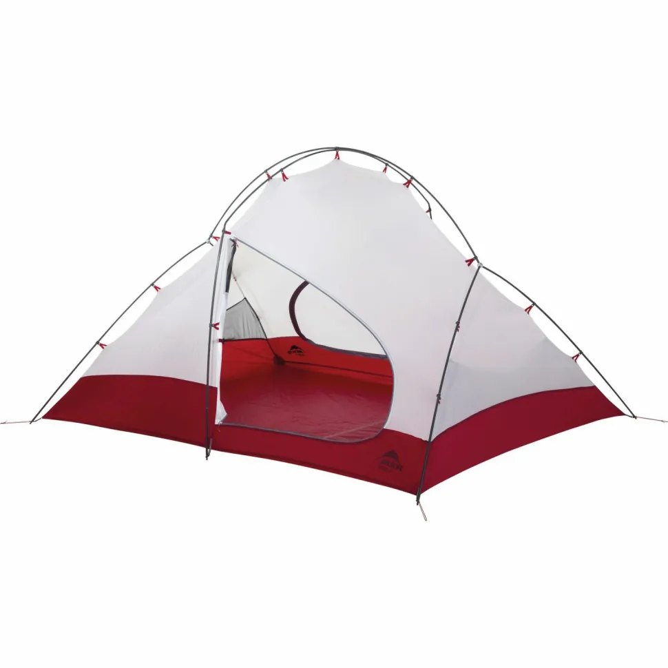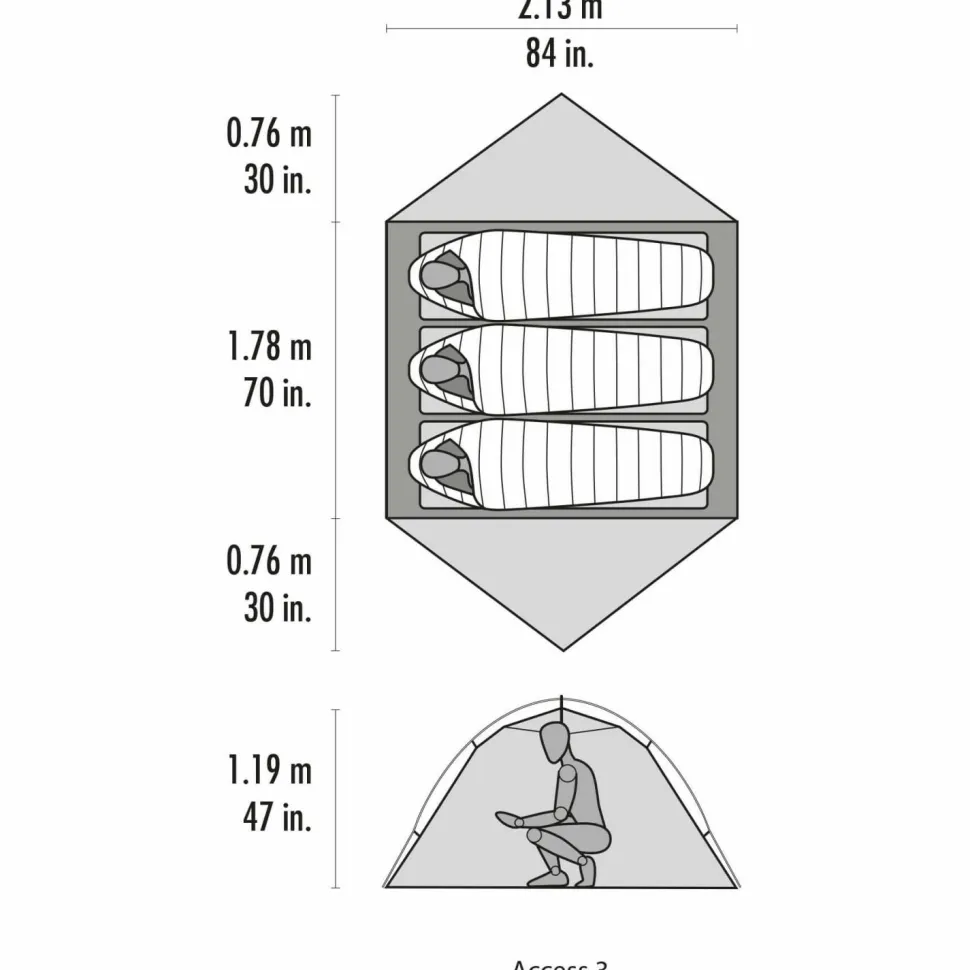 Geräumig, stabil und wintertauglich – so lässt sich das Access 3 Tent von MSR in einem Satz beschreiben. Die Zelte der Access-Serie sind dabei besonders auf die Herausforderungen von Wintertouren zugeschnitten. Die verwendeten Außenmaterialien aus Nylon, mit DuraShield PU- und Silikon-Beschichtung, halten demnach zuverlässig Wasser ab und sind besonders reißfest. In Kombination mit dem robusten Easton Syclone-Gestänge ergibt das alles zusammen eine hervorragende Sturmfestigkeit! Insbesondere oberhalb der Baumgrenze, in größeren Höhen, kann einem der nächtliche Schneefall schon mal ordentlich zusetzen – oder einen gleich ganz festsetzen – in jedem Fall eine Herausforderung für die Stabilität eines jeden Zeltes. MSR hat sein Access 3 daher mit einer Rahmenkonstruktion versehen, die besonders viel Wert auf die Stützfunktion im Mittelbereich des Zeltes legt, d.h. genau dort, wo sich zumeist ein Großteil des Schnees ansammelt. Damit bei all diesen technischen Details gleichzeitig die Behaglichkeit im Inneren nicht zu knapp kommt, verfügt das 3-Personenzelt über zwei standesgemäß große Apsiden mit separaten Eingängen. Dort lässt sich nicht nur ein großer Teil der Ausrüstung lagern, sondern erweitert die Wohnfläche unter Extrembedingungen gleich mal um anderthalb qm². Wenn es also ein leichtes, sturmfestes Ganzjahreszelt mit einem klaren Schwerpunkt auf Wintertouren sein darf, ist das Access 3 die bewährte Komplettschutz-Lösung für Touring-Enthusiasten jedweder Art!