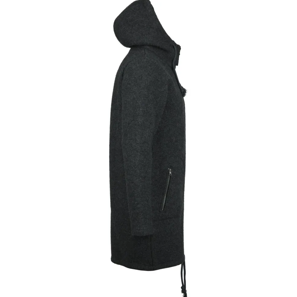 Der Patrick von Mufflon ist ein warmer Parka aus reiner Schurwolle. Diese sorgt für eine gute Wärmeisolation und hält den Körper sogar im nassen Zustand noch warm. Dies ist besonders an wechselhaften Tagen von Vorteil. Die Kapuze mit Stehkragen und der Kordelzug im Saum sorgen für einen umfassenden Schutz vor Wind und Wetter und eine gute Passform. Das besonders dicke Material des Mantels wärmt den Körper auch bei niedrigen Temperaturen und fühlt sich sehr angenehm und weich an. Er wird in einem umweltfreundlichen Walkverfahren, ohne künstliche Stoffe und Chemikalien in Deutschland hergestellt. Egal ob im Alltag oder beim Stadtbummel, dieser Parka bietet immer einen angenehmen Tragekomfort.
