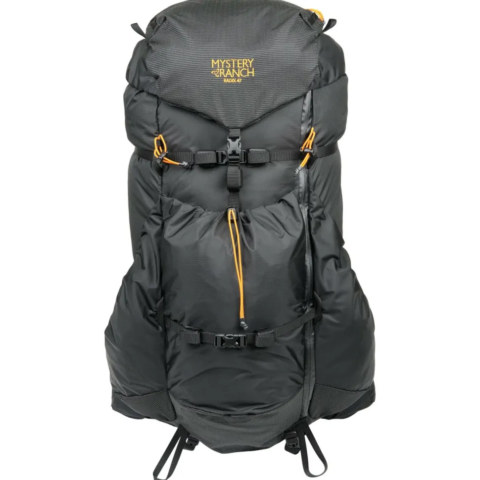 Der robuste seitliche Hauptfach-Reißverschluss des Radix 47 sorgt für schnellere und bequemere Zugänglichkeit des Hauptgepäcks. Zusätzlich ist das Hauptfach auch von oben zugänglich. Das Deckelfach und die leicht komprimierbaren Vorder- und Seitentaschen eignen sich perfekt für die Unterbringung von Zusatzkleidung, Wasserflaschen und kleinen Ausrüstungsdetails, die schnell zur Hand sein sollen.