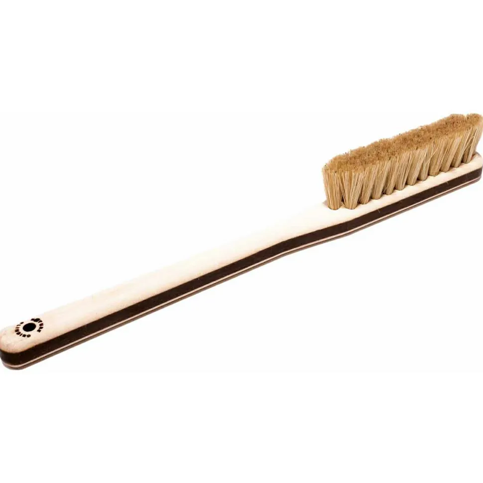 Die dänischen Natur- und Kletterfreaks von Nature Climbing mit eigener Werkstatt in Aarhus stellen ebendort auch die eigene Boulderbürste Brush her! Das hübsche Ding wird aus wunderschönem, FSC-zertifizierten Ahornholz, das an den Rändern dunkel gebrannt wurde, sowie einem Walnußholz-Einsatz (ebenfalls FSC-zertifiziert), der die Wildschweinborsten aufnimmt, hergestellt. Der Nachhaltigkeitsanspruch von Nature Climbing hört hier allerdings noch nicht auf, sondern hat auch eine soziale Komponente, denn die Borsten werden von Blinden Bürstenmachern angebracht, da eine Kooperation mit der dänischen Blinden-Organisation „Blindes Arbejde“ besteht. Vorbildlich!