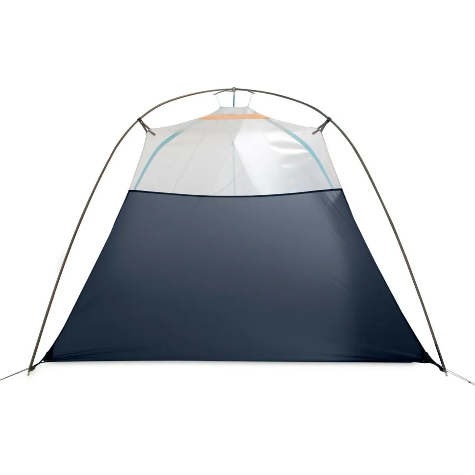 Das Außenzelt ist, wie auch der Zeltboden, aus dem OSMO Ripstop Polyester-Nylon-Verbundgewebe gefertigt. Das besteht zu 100% aus recycelten Rohstoffen, ist super leicht, reiß- und abriebfest und ist ganz ohne chemische Zusatzstoffe flammhemmend. Ein PFC-freies Finish sorgt für stark wasserabweisende Eigenschaften. Der Polyesteranteil sorgt zudem dafür, dass sich das Gewebe unter Nässeeinfluss nicht dehnt. Das Innenzelt aus No-See-Um Mesh hält beißendes und stechendes Ungeziefer effektiv draußen und sorgt gleichzeitig für ein angenehmes Zeltklima.