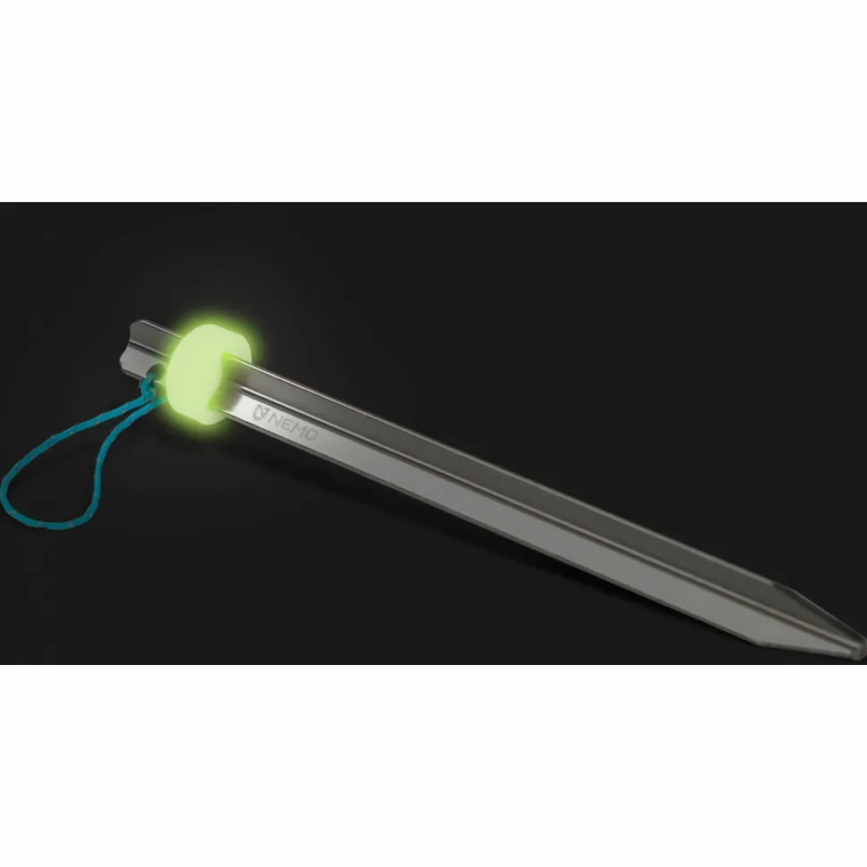 Die leichten Sweepstake Heringe von Nemo sind aus hochwertigem 7000 Aluminium gefertigt und bieten mit 18 cm Länge vielseitige Einsatzmöglichkeiten. Durch ihre spezielle Form und den integrierten Schaber, wird der Schmutz mit einer Handbewegung vom Hering entfernt, und der Dreck landet nicht im Rucksack oder in der Zelttasche.