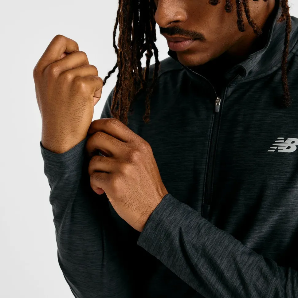 Du suchst einen Pullover, der Dich bei jedem Wetter begleitet? Dann ist der Space Dye 1/4 Zip von New Balance genau richtig für Dich! Der 1/4-lange Reißverschluss sorgt dafür, dass Du blitzschnell zwischen Belüftung und Schutz wechseln kannst – perfekt für spontane Wetterumschwünge auf Deiner Tour. Die Daumenschlaufen halten die Ärmel sicher am Platz und bieten Dir ein Extra an Komfort, während reflektierende Details Deine Sichtbarkeit erhöhen – besonders praktisch beim frühen Start in den Tag oder späten Heimweg nach dem Training.