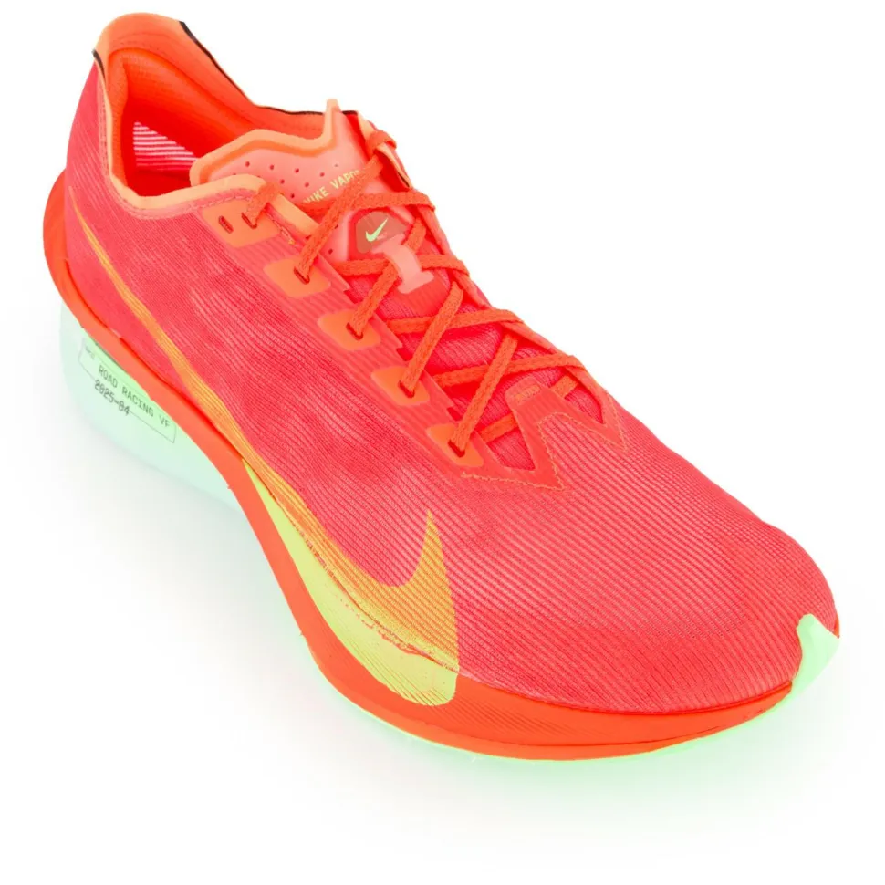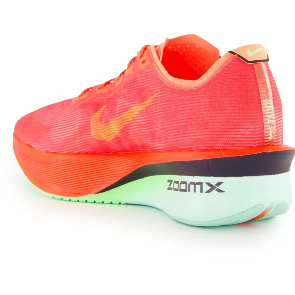 Nike kombiniert ein leichtes Obermaterial aus Mesh-Gewebe mit einer durchgehenden Carbonfaser Flyplate und einer griffigen Außensohle mit neu gestaltetem Waffelprofil. Für angenehme Dämpfung und optimale Energieeffizienz sorgt der leistungsfähige ZoomX Schaumstoff.