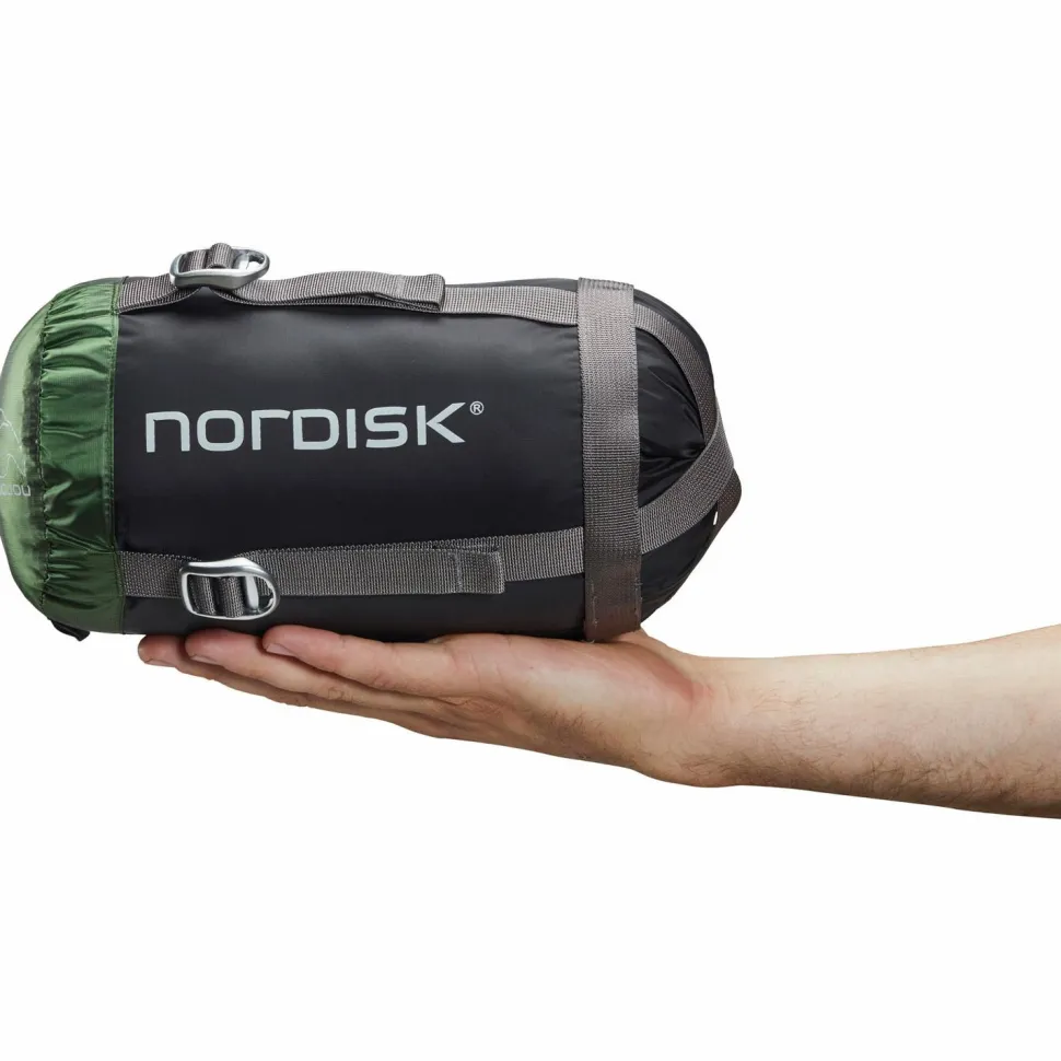 Bei milden Temperaturen schläft es sich im Gormsson +10 Curve Kunstfaserschlafsack von Nordisk besonders bequem. Der bequeme Schlafsack ist für Einsätze im Sommer konstruiert und wird mit einer Komforttempertatur von +14°C und einer Limittemperatur von +10°C angegeben. Seine wärmende Füllung besteht aus Norguard S-PO 85 Kunstfaser, die von einer robusten Ripstop-Nylon Außenhülle umgeben wird. Im Inneren sorgt das 30D Soft-Touch Nylon-Gewebe für angenehmen Liege- und Schlafkomfort. Der Gormsson +10 Curve ist mit einem durchgehenden 2-Wege-Reißverschluss ausgestattet, so dass er bei höheren Temperaturen komplett geöffnet werden kann. Durch sein anatomisch optimierte Form mit schmalerer Fußbox und genügend Platz für den Oberkörper und einer weichen 3D-Kapuze ist der Nordisk Kunstfaserschlafsack perfekt für Sommertouren und Campingurlaube geeignet. Für wichtige Accessoires verfügt der Sommerschlafsack über eine praktische Innentasche mit Reißverschluss.